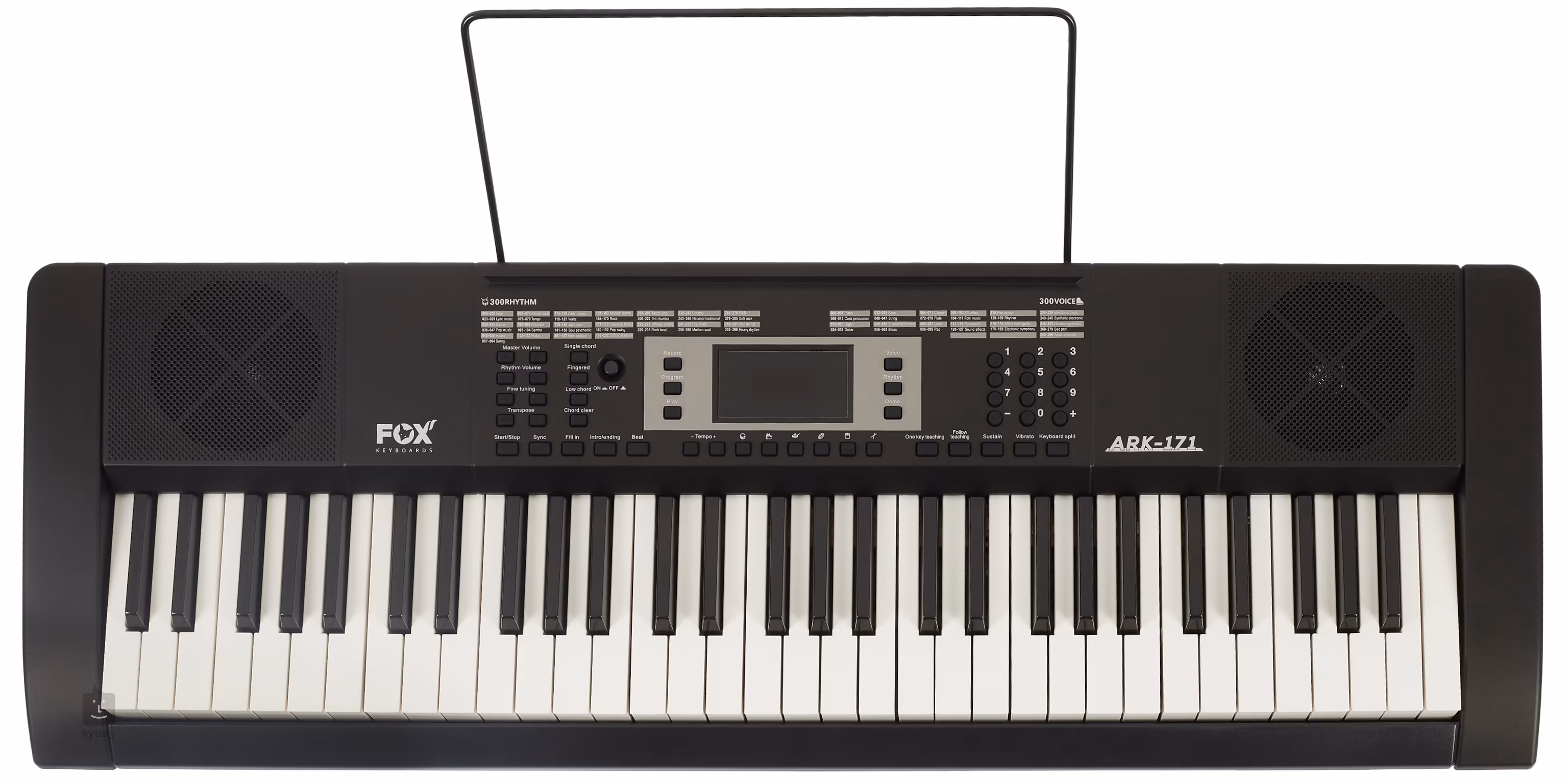 Klávesnica FOX ARK-171 je multifunkčná klávesnica so 61 štandardnými klávesmi, nedynamickou mechanikou zdvihu a centrálnym displejom LED.