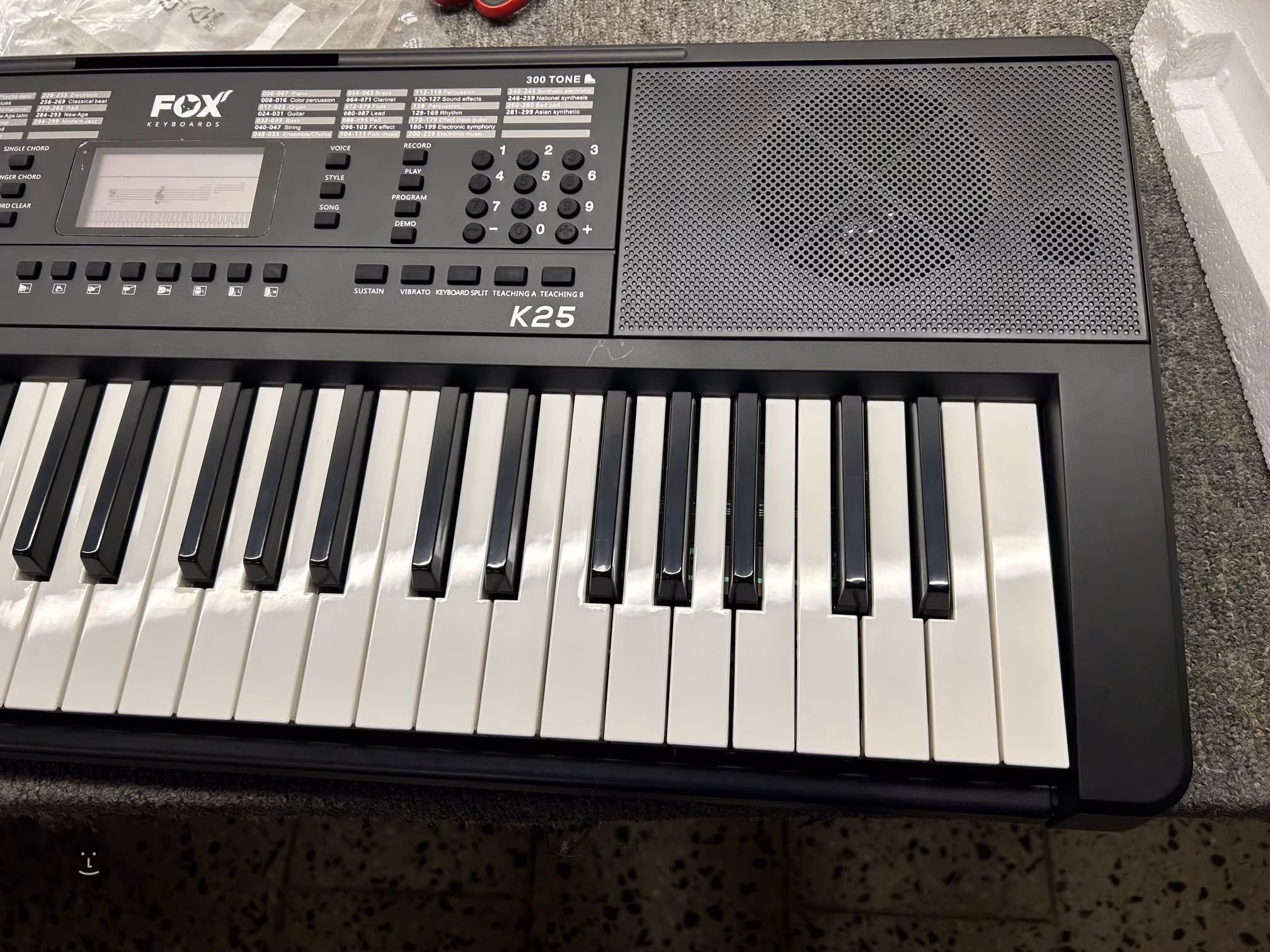 FOX K25 ponúka 54 klávesov štandardnej veľkosti s dynamikou, 300 klasických a elektronických zvukov, osem bicích padov, 300 automatických sprievodov alebo 50 demo skladieb. K dispozícii sú aj pokročilé funkcie, ako napríklad Split (rozdelenie klaviatúry na hranie dvoch nástrojov súčasne) alebo nastavenia Sustaine (reverb) a Vibrato. Klaviatúru možno tiež transponovať, čo ocenia začiatočníci aj pokročilí hráči. Samozrejmosťou je možnosť hrať akordy jedným prstom, funkcia Record na nahrávanie vašich pokusov alebo metronóm a výukový systém. Ku klávesom môžete pripojiť mikrofón alebo externé zariadenie s obľúbenými nahrávkami a jamovať s nimi.