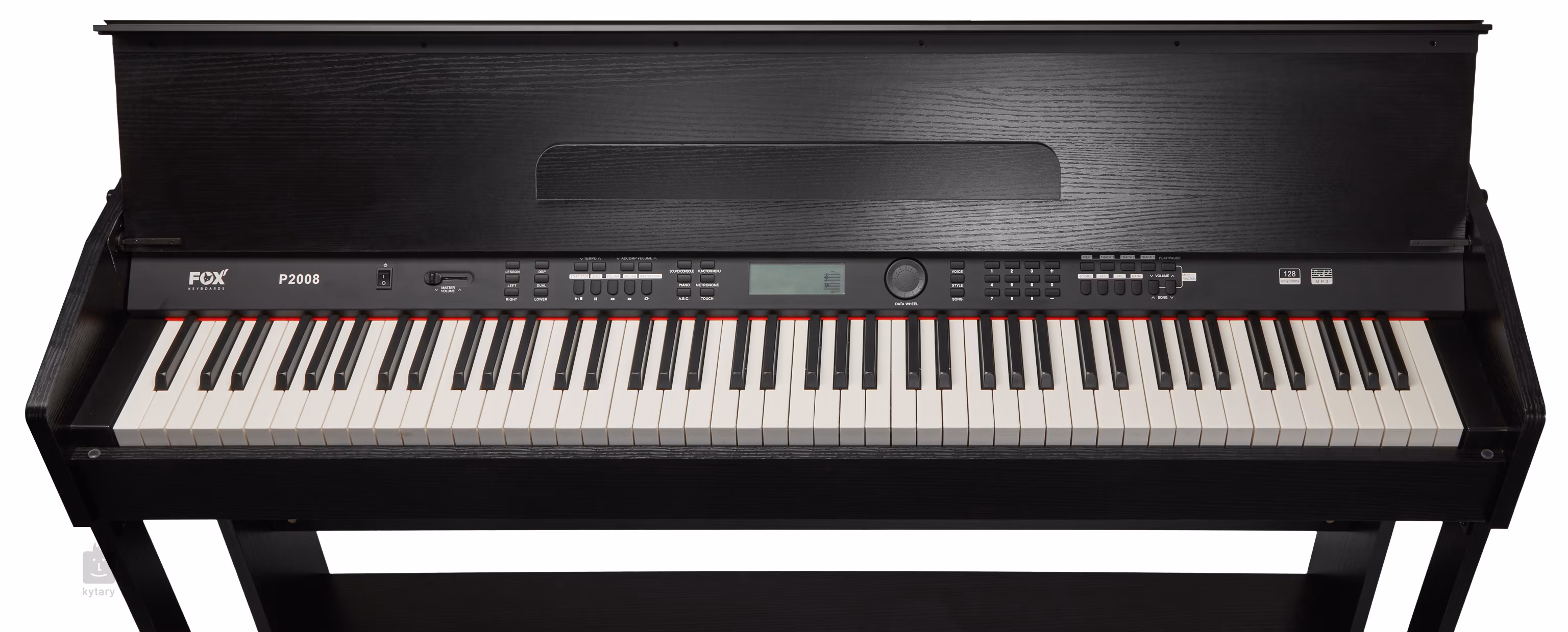 FOX P2008 ponúka 88 klávesov štandardnej veľkosti s dynamikou, štyri skupiny bicích nástrojov, DSP efektovú jednotku, prehľadný LCD displej, 360 zvukov, 160 automatických sprievodov a 80 demo skladieb. K dispozícii sú aj pokročilé funkcie ako Split (rozdelenie klaviatúry na hranie dvoch nástrojov súčasne), Dual Voice (vrstvenie zvukov) a nastavenia Sustaine (reverb) a Vibrato. Klaviatúru možno tiež transponovať, čo ocenia začiatočníci aj pokročilí hráči. Samozrejmosťou je možnosť hrať akordy jedným prstom, funkcia Record na nahrávanie vašich pokusov až do troch stôp alebo metronóm a výukový systém. Ku klávesom sa dodáva externé zariadenie s obľúbenými nahrávkami na jamovanie. Vďaka MIDI In/Out možno klávesy použiť aj ako ovládač pre hudobný softvér a výstup na slúchadlá vám umožní hrať aj v noci. Súčasťou balenia je trojpedálový soft a sustain pedál.