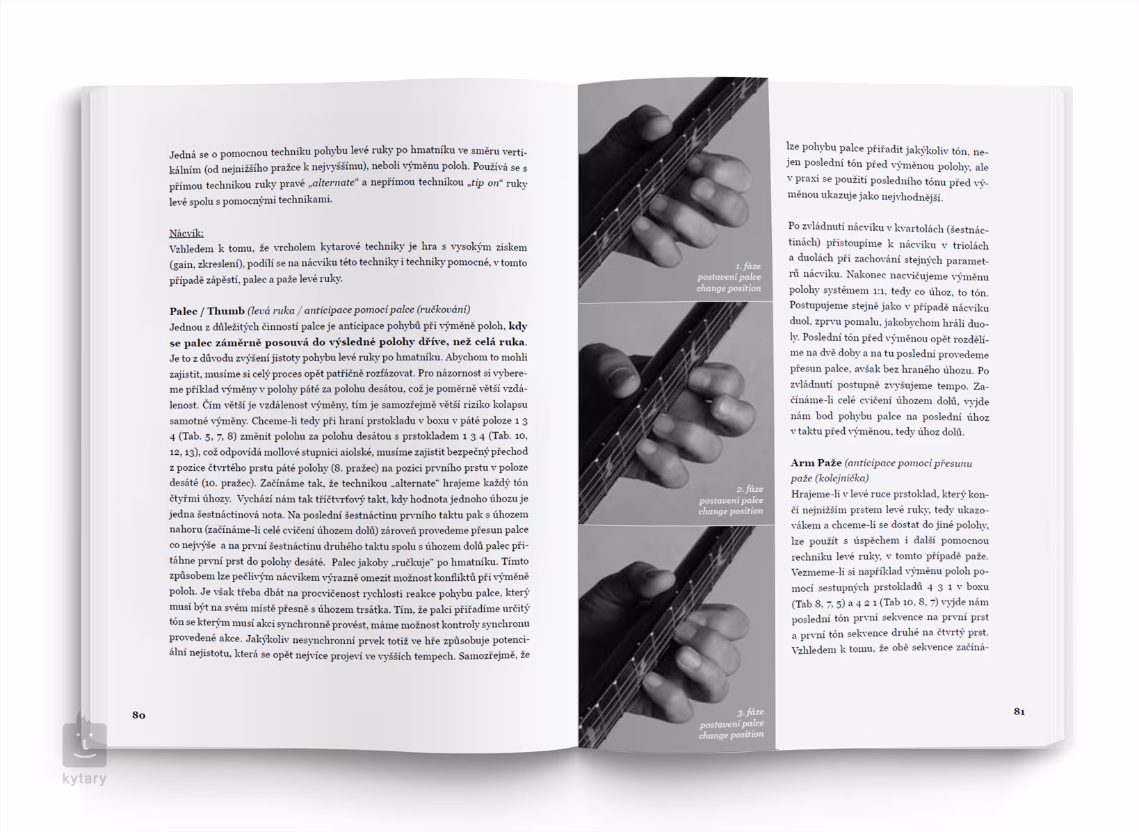 Skladateľ, textár, učiteľ hudby a predovšetkým gitarista Marek Šimůnek venuje svoju knihu všetkým známym gitarovým technikám z praktického hľadiska. Podrobne opisuje históriu a uplatnenie jednotlivých techník a potom vysvetľuje, ako tieto techniky dosiahnuť a ako ich cvičiť. Každá kapitola je doplnená bohatou fotografickou dokumentáciou.