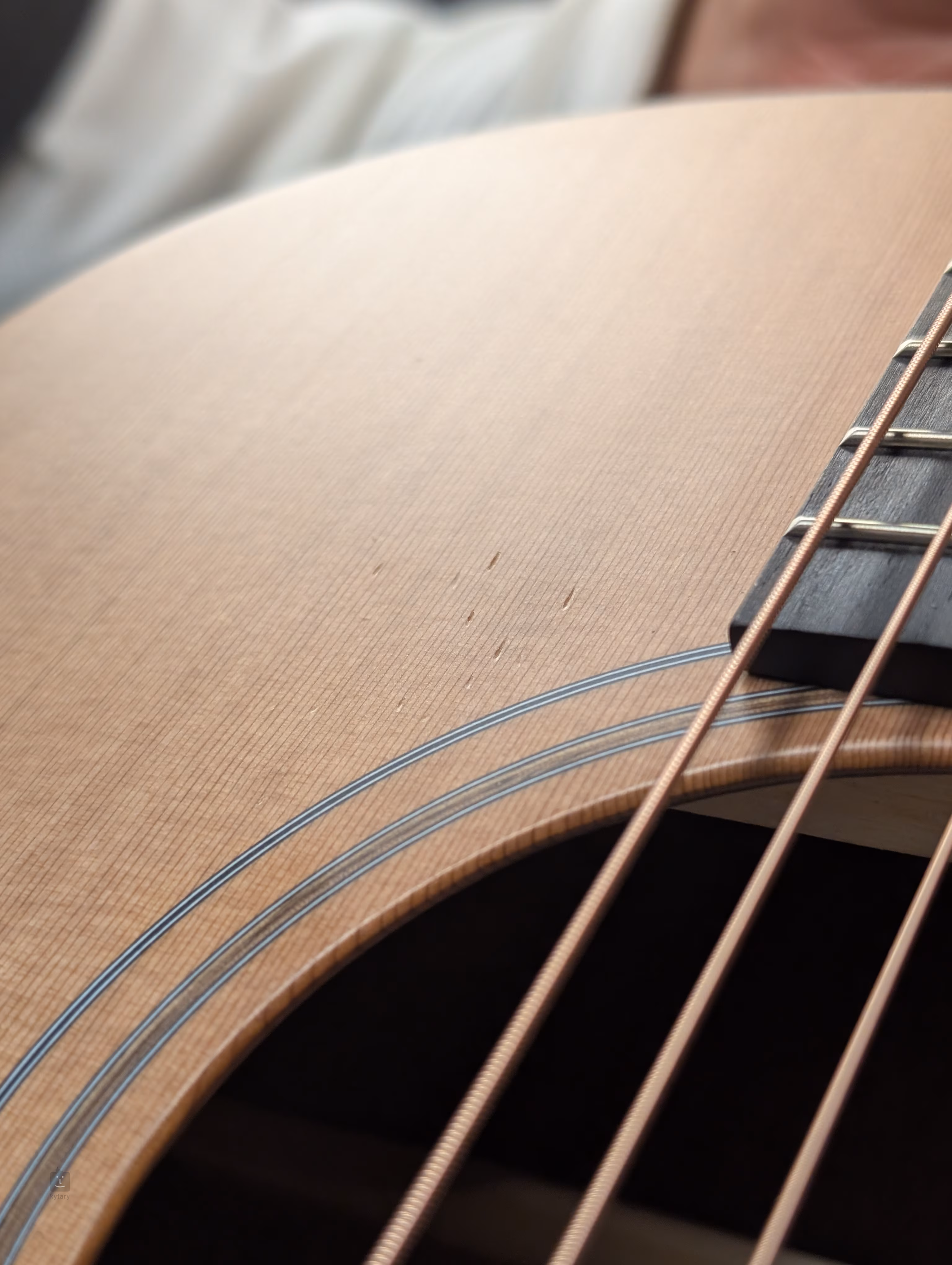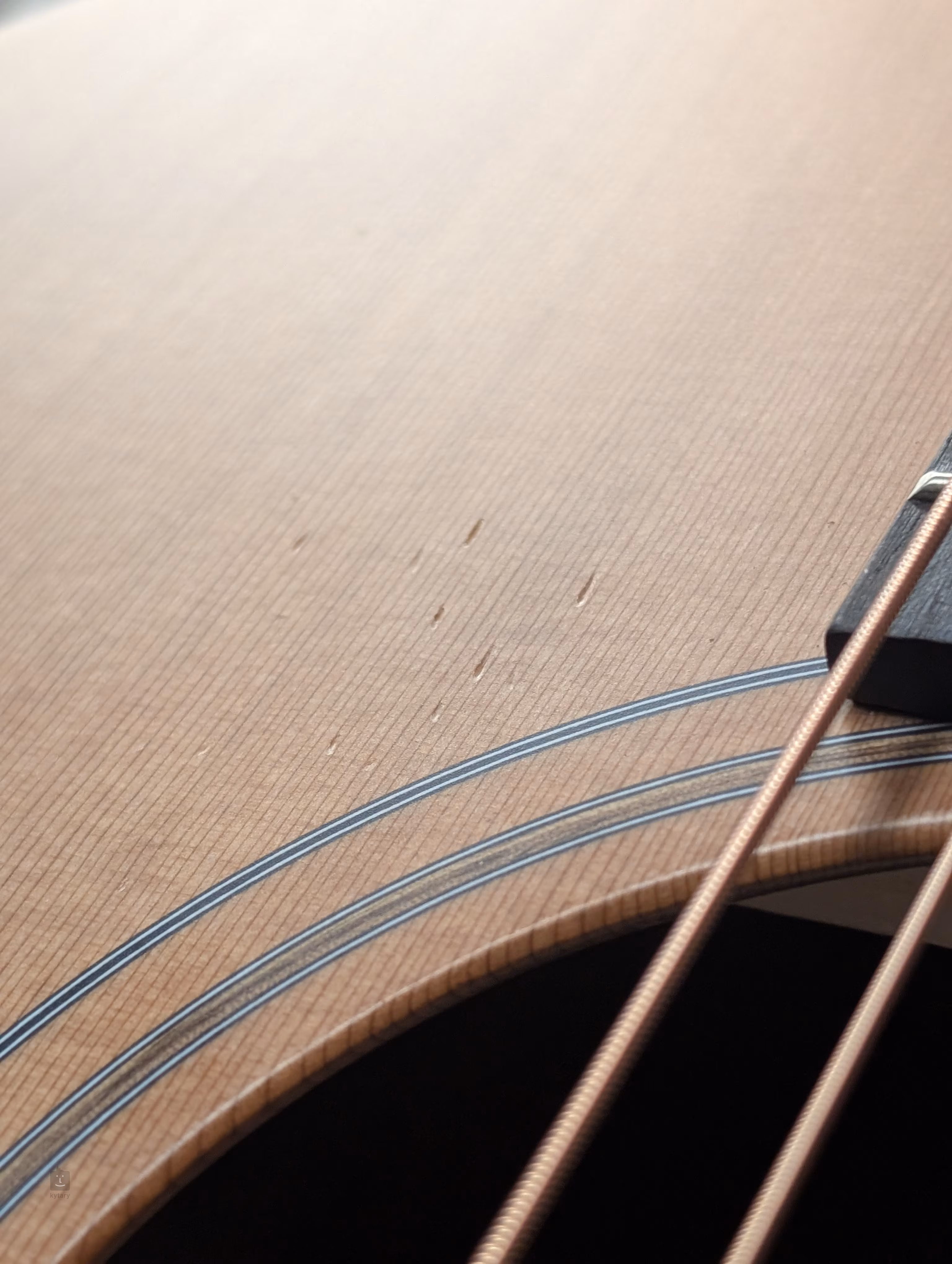Gitara má niekoľko malých škrabancov na prednej doske (pozri foto). Ide len o kozmetickú vadu, nástroj je v dobrom stave a plne funkčný.