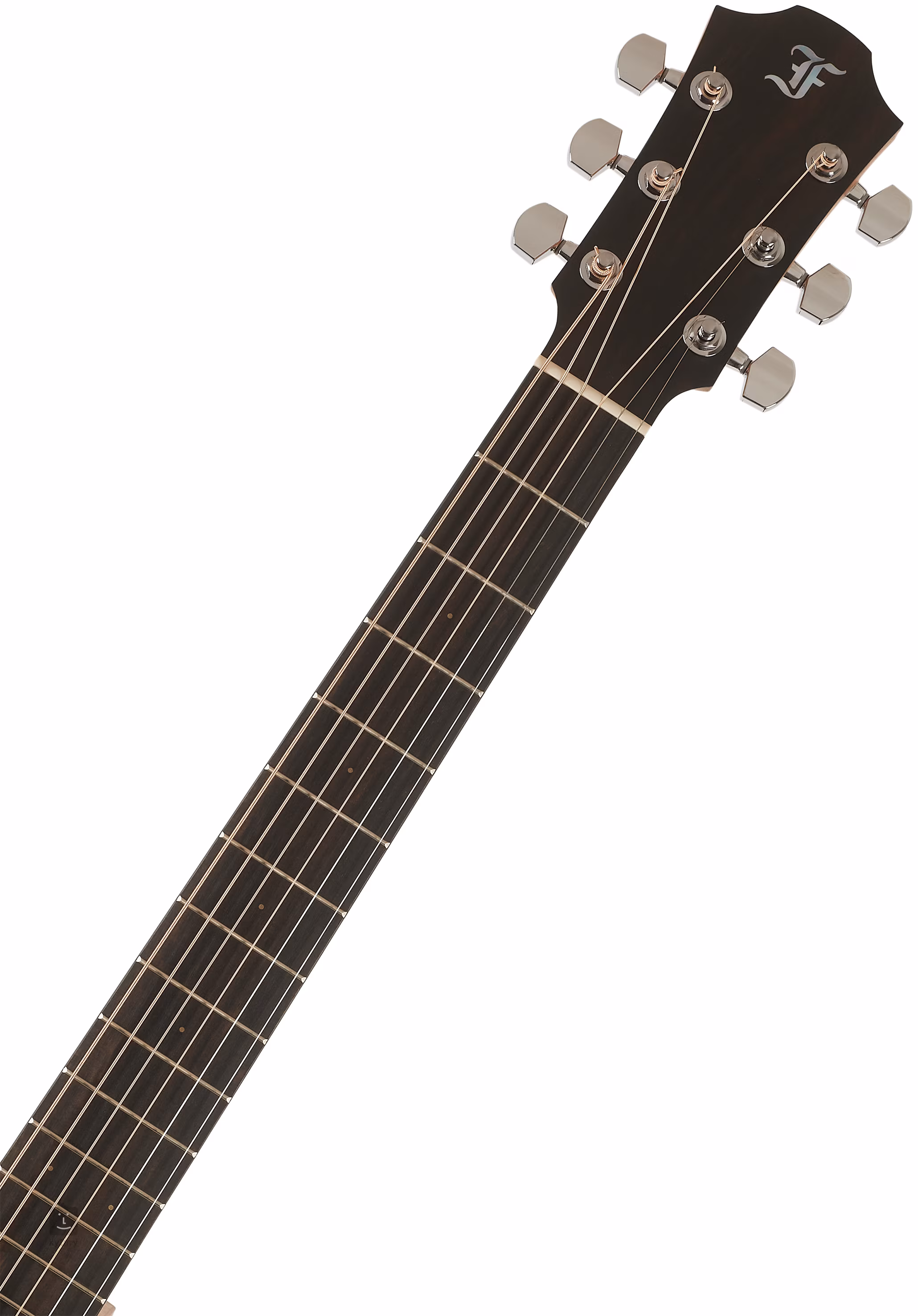 Jemné remeselné spracovanie gitár Furch Blue Plus podčiarkuje imitácia korytnačiny, dvojkrúžková rozeta s intarziou z čierneho orecha, brúsené pražce a priehľadný pickguard, ktorý necháva vyniknúť prirodzenej kráse dreva. Orientáciu na ebenovom hmatníku uľahčujú bočné a predné bodové polohové značky. Presné a stabilné ladenie zaručujú pochrómované firemné mechaniky s prevodovým pomerom 1:18.