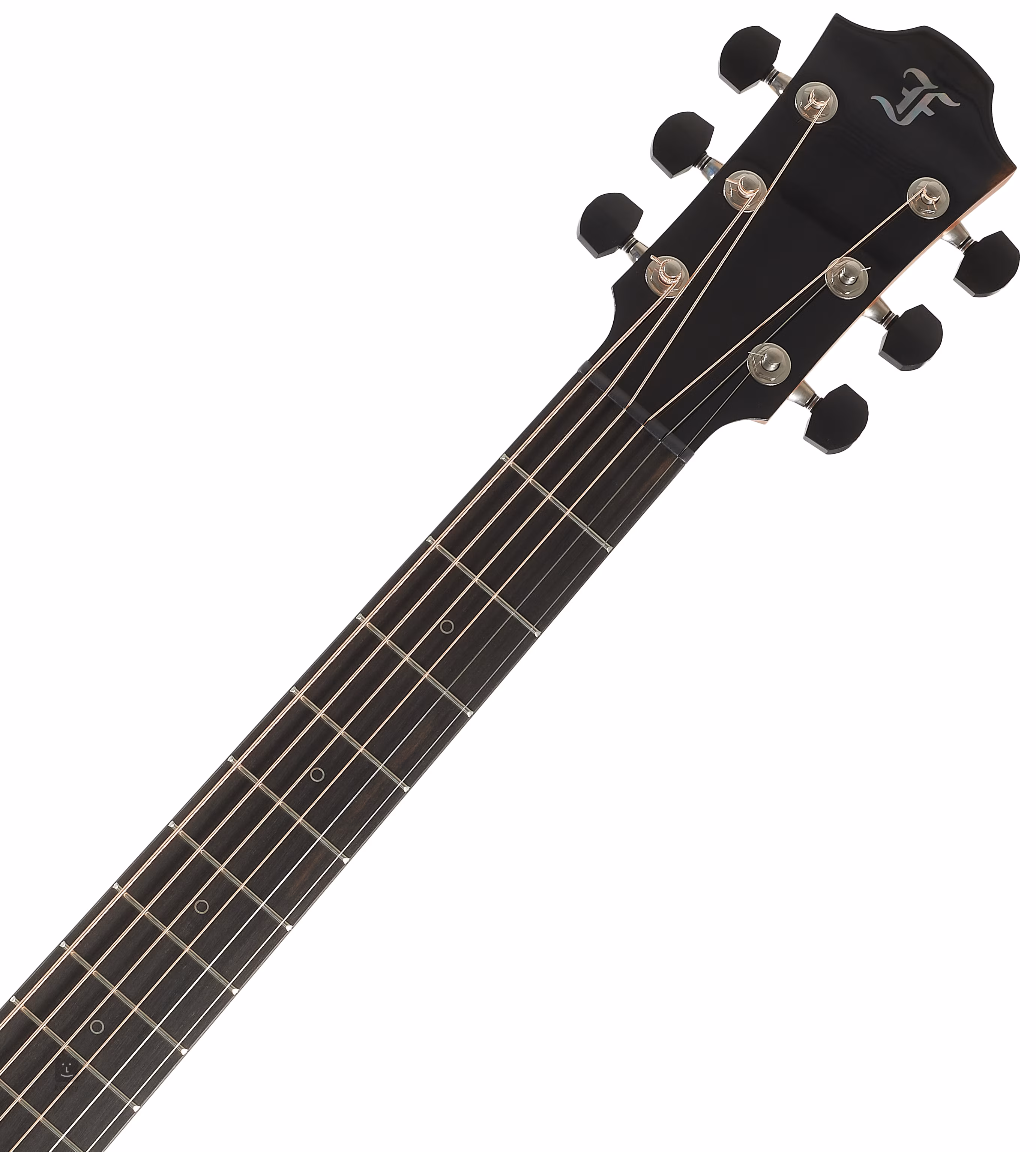Priehľadný pickguard necháva vyniknúť prirodzenú kresbu dreva, pričom neovplyvňuje rezonanciu rezonančnej dosky. Stabilné ladenie zaručuje špičková mechanika Gotoh 510 v striebornej patine s leštenými ebenovými kolíkmi a jemným prevodom 1:21.