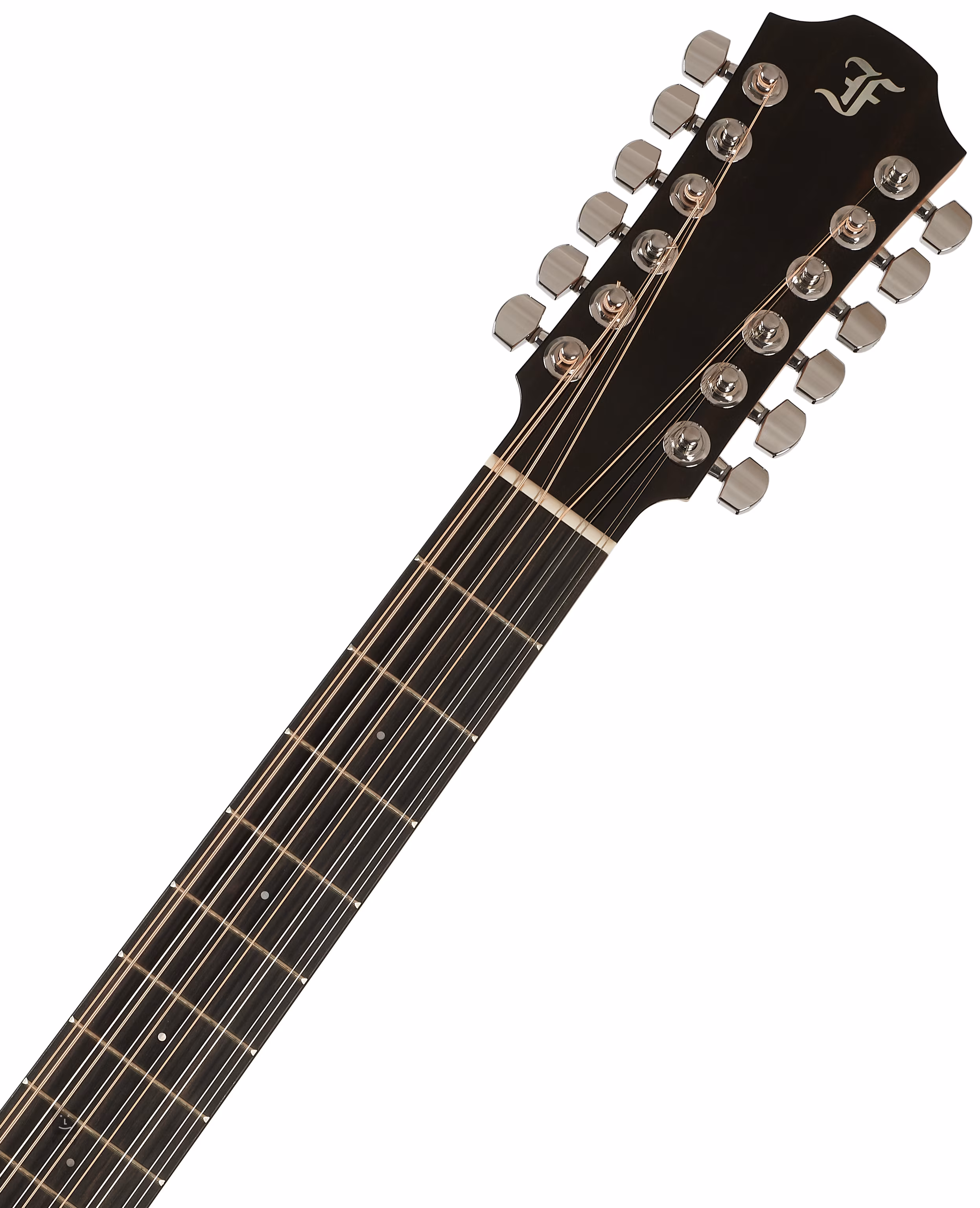 Orientáciu na ebenovom hmatníku uľahčujú biele perleťové bočné a predné polohové značky. Chrómované firemné mechaniky s prevodovým pomerom 1:18 zaručujú presné a stabilné ladenie. Luxusný vzhľad gitár Furch Green podčiarkuje imitácia korytnačiny s päťvrstvovou väzbou s čiernymi a bielymi kontrastnými líniami a dvojkrúžková rozeta s intarziou z čierneho orecha.