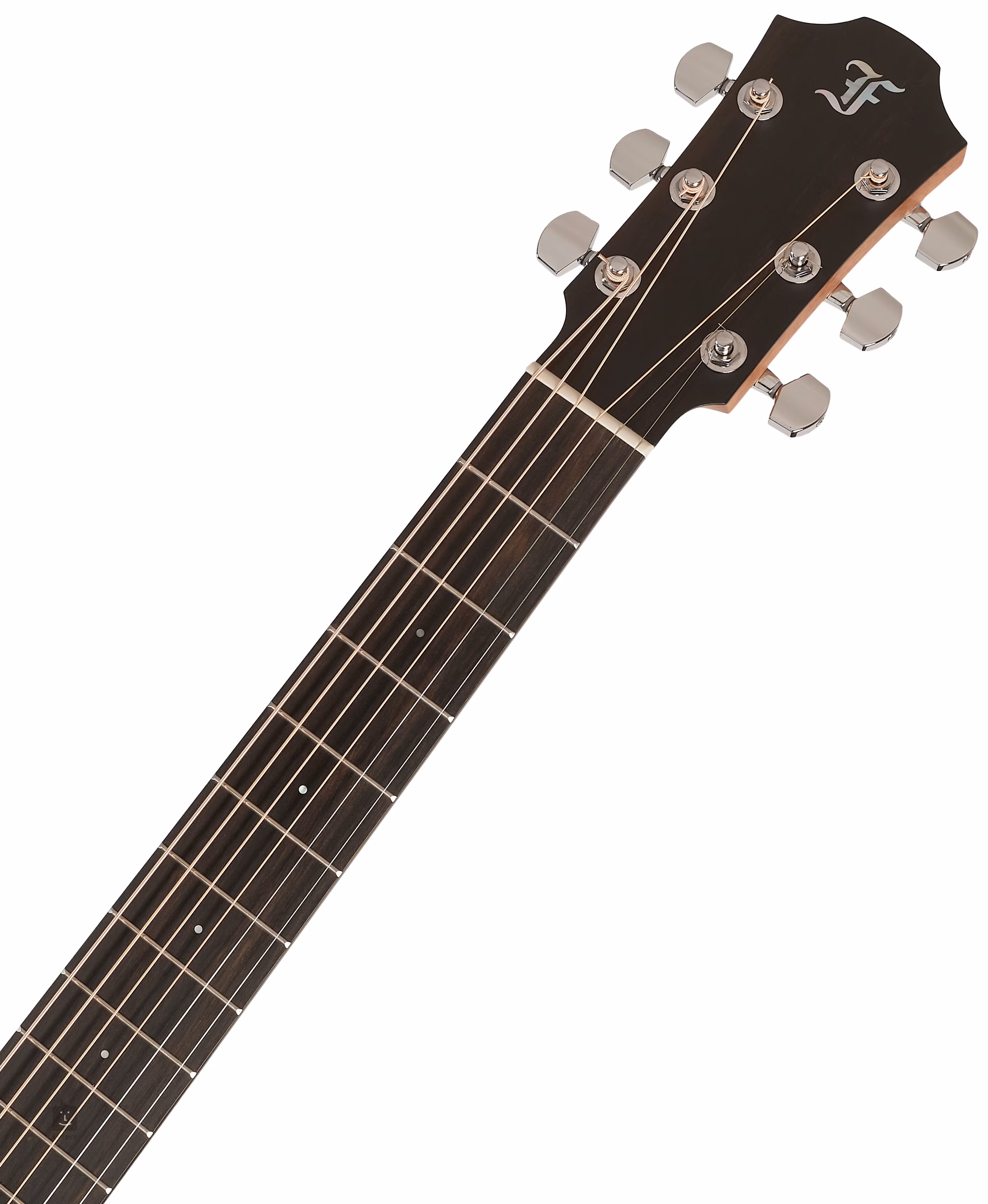Orientaci na ebenovém hmatníku usnadňují boční a čelní bodové poziční značky z bílé perleti. Saténová úprava krku Full-Pore Smooth-Slide Satin Finish optimalizuje hratelnost a umožňuje klouzat plynule z akordu do akordu. Chromované firemní mechaniky s převodovým poměrem 1:18 jsou zárukou přesného a stabilního ladění. Luxusní vzhled kytar Furch Green podtrhuje lemovka z imitace slonoviny s výložkou z pěti vrstev černobílých kontrastních linek a rozeta tvořená dvojitým prstencem s vykládáním z černého ořechu.