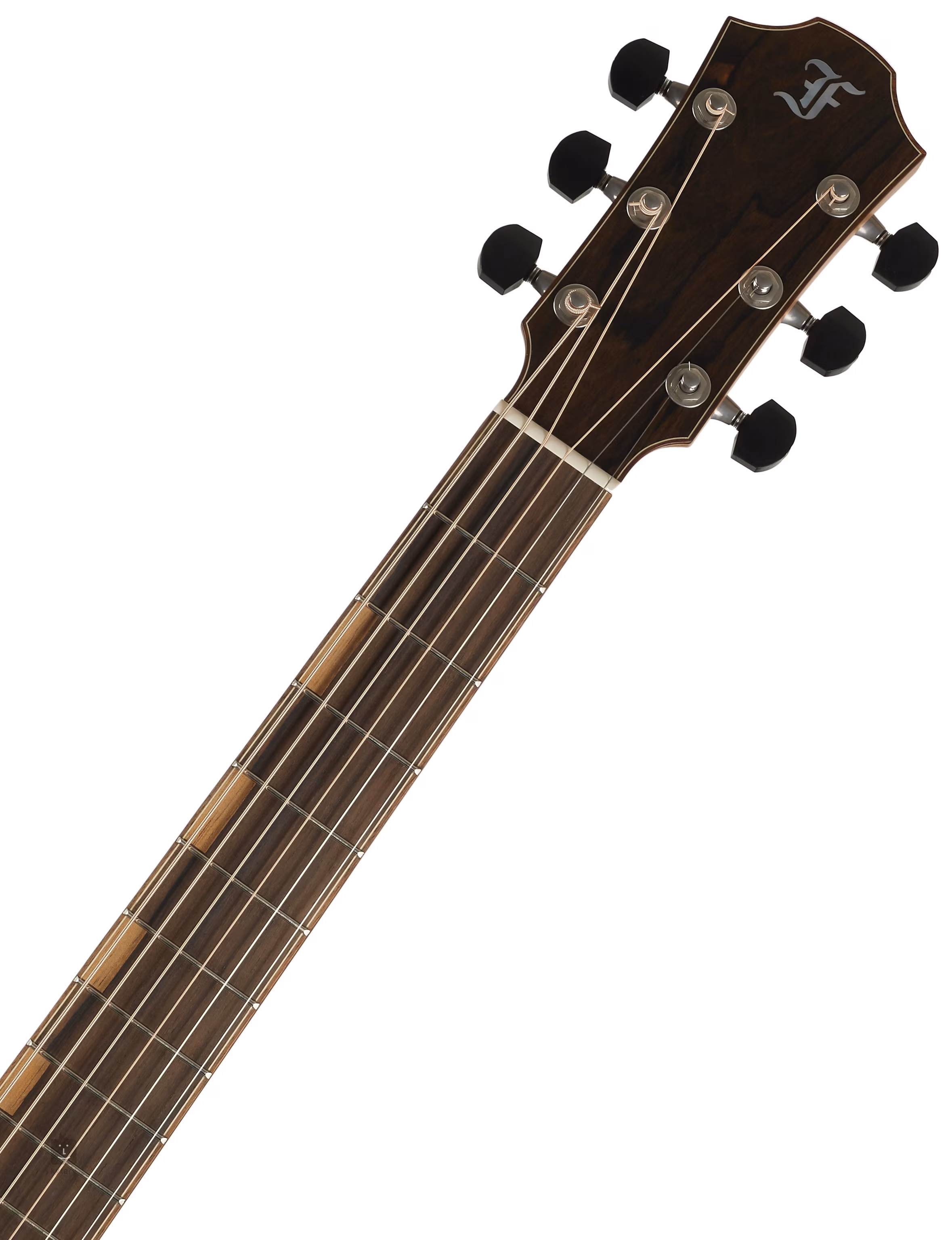 Hmatník, vyrobený z exkluzívneho stredoamerického dreva Ziricote s výraznou kresbou, zdobia netradičné havajské koa obdĺžnikové polohové značky na prednej strane a perleťové lineárne značky po stranách. Stabilné ladenie zabezpečuje špičková mechanika Gotoh 510 v odtieni striebornej patiny s leštenými ebenovými kolíkmi a prevodovým pomerom 1:21. Luxusný vzhľad gitary podčiarkuje hlavička a hmatník zo ziricotového dreva, väzba (telo, hmatník a hlavička), prémiová kruhová rozeta a dekorácia koncových blokov z havajského dreva koa a intarzia rezonančnej dosky z červeného srdca.