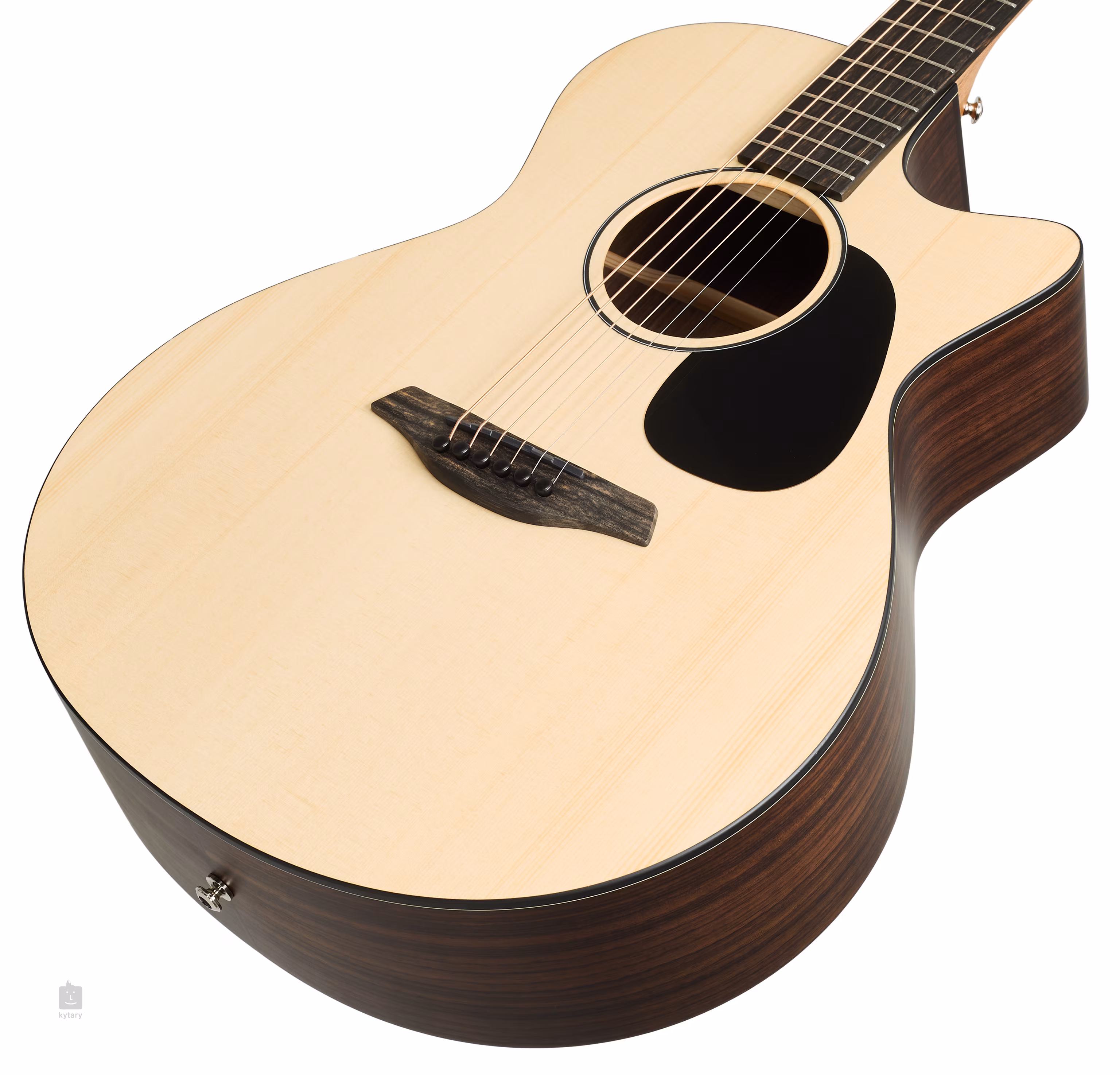 Predná strana gitary Grand Auditorium Violet Gc-ER je vyrobená z masívneho severoamerického smreka Engelmann, zatiaľ čo zadná strana a luby sú z masívneho indického palisandru. Predná doska, zadná doska a luby sú upravené povrchovou úpravou Open Pore, ktorá poskytuje ochranu nástroja a podporuje prirodzené zvukové vlastnosti dreva. Vynikajúce akustické vlastnosti nástroja umocňuje špeciálne rebrovanie na rezonančnej doske.