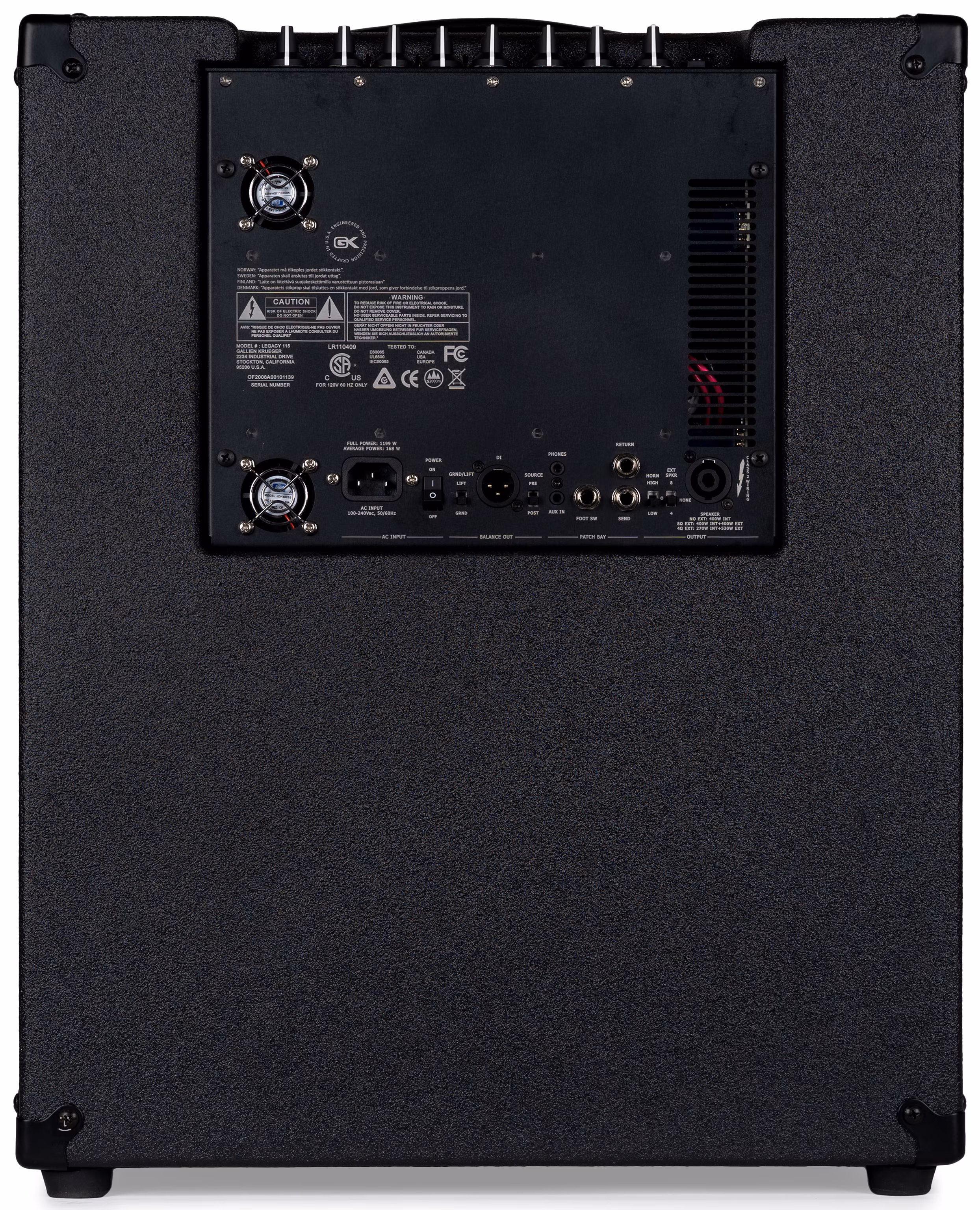 Päť modrých LED diód indikuje pripojenie napájania, aktiváciu, prehriatie, skrat a preťaženie vstupu. Na zadnej strane šasi sa nachádzajú konektory mini-jack pre slúchadlá a Aux In, vstup pre nožný spínač, symetrický XLR linkový výstup s odpojením od zeme a voľbou Pre/Post, send/reverzná efektová slučka, trojpolohový prepínač klaksónu a Speakon pre pripojenie externého kabinetu.