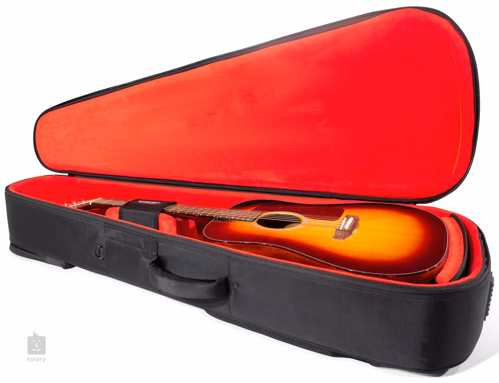 Puzdro je vyrobené z viacvrstvovej polotuhé konštrukcie s vonkajším materiálom z vodoodolného nylonu 1000D a mäkkým červeným mikrovláknovým interiérom, ktorý chráni povrch vášho nástroja pred poškodením. Vo vnútri nájdete nastaviteľný blok krku s suchým zipsom a vnútorné výstuhy tela, ktoré zabezpečujú stabilitu počas prepravy. Nechýbajú ani praktické detaily, ako je batožinová visačka a unikátny laserom gravírovaný QR kód pre jednoduchú registráciu alebo sledovanie puzdra.