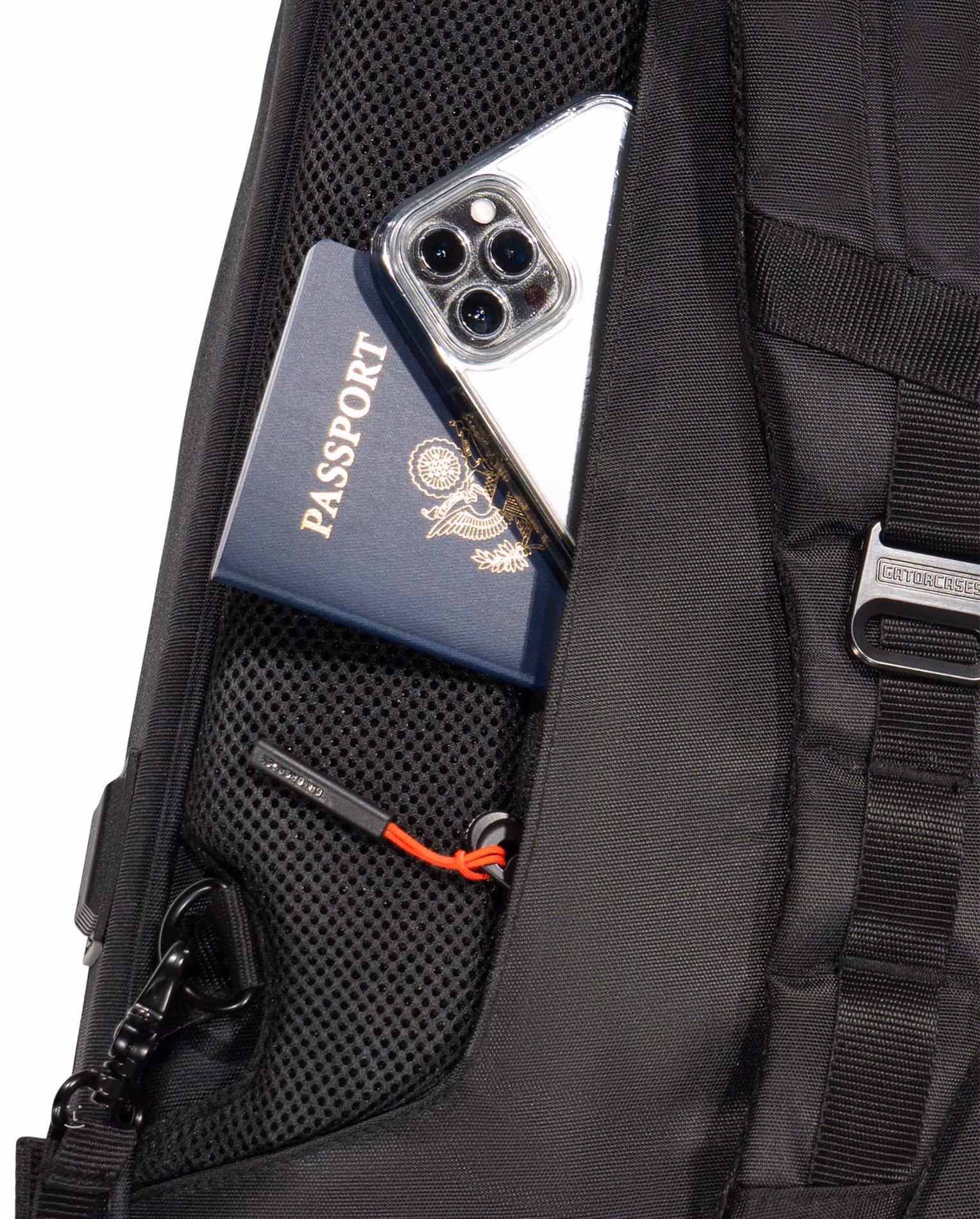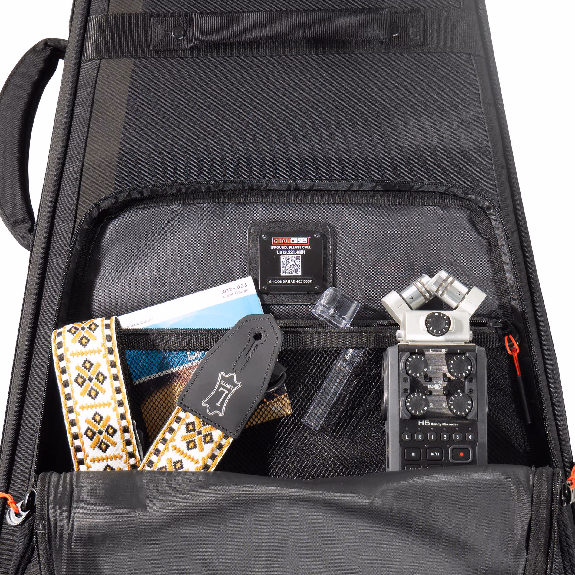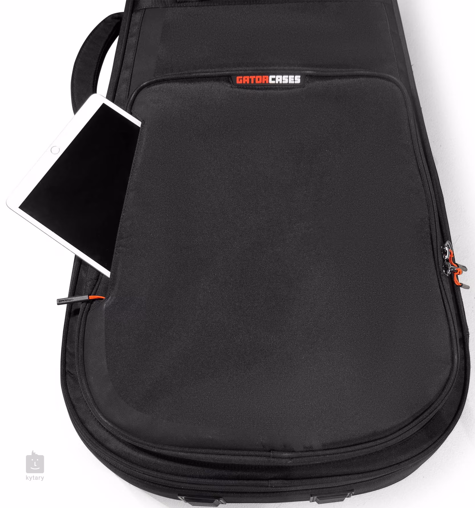 Pri cestovaní oceníte skryté ramenné popruhy v štýle batohu s integrovaným otváračom fliaš. Vďaka vystuženým pogumovaným rukovätiam na prednej, zadnej a bočných stranách sa puzdro dá pohodlne nosiť v rôznych polohách. Veľké predné vrecko poskytuje dostatok priestoru na káble, struny a príslušenstvo, zatiaľ čo skryté vrecko na zadnej strane pojme dokumenty, telefón alebo peňaženku. Hlavné zipsy sú kompatibilné so zámkami TSA, takže s kufrom ľahko prejdete bezpečnostnou kontrolou na letisku. Puzdro je tiež vybavené štýlovým krytom proti dažďu, ktorý chráni puzdro a nástroj v nepriaznivom počasí.