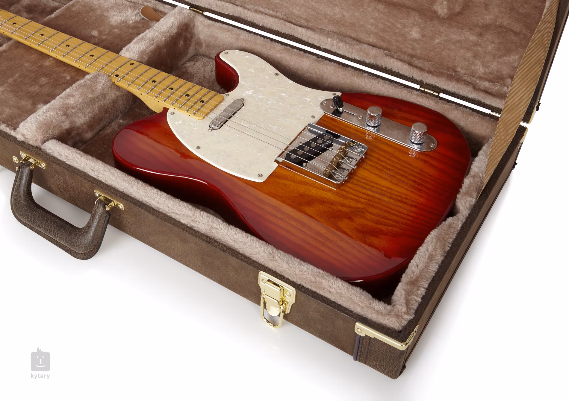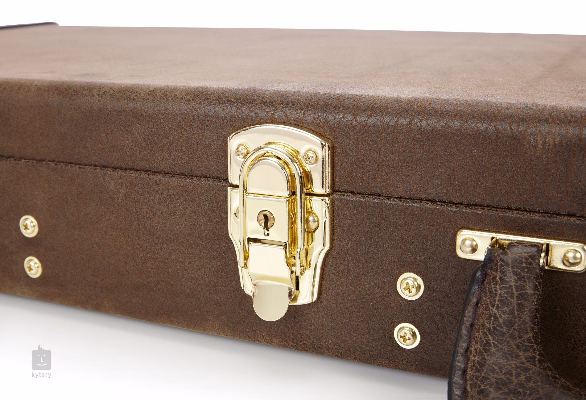 Konstrukce je vyrobena z robustních překližkových panelů a pečlivě sestavená tradičním způsobem, díky čemuž vytváří mimořádně spolehlivou ochranu. Vnější povrch tvoří odolná hnědá koženka, která v kombinaci se zlatým hardwarem vytváří unikátní retro design. Pro naprosté bezpečí kytary je kufr vybaven sadou spolehlivých uzamykatelných přezek, které zamezují nechtěnému otevření kufru nebo krádeži nástroje.