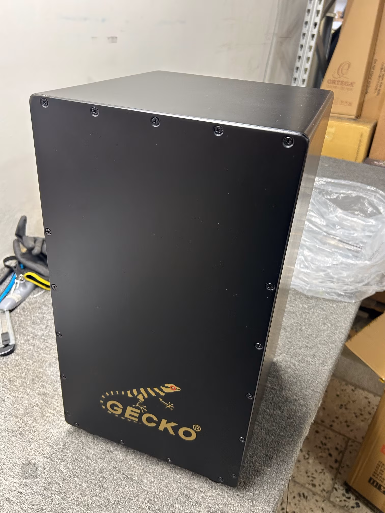 Diery v rohoch, kde je pripevnená hracia doska (pozri foto). Inak v dobrom stave a plne funkčné. Lepkavá, nevzhľadná kartónová krabica. Cajon je pôvodne latinskoamerický nástroj, v ktorom otroci nosili ryby alebo ovocie a neskôr na ňom začali bubnovať. Odvtedy prešiel významným vývojom a v posledných rokoch sa stal veľmi populárnym perkusným nástrojom, ktorý dokonale dopĺňa mnohé akustické vystúpenia alebo jam sessions. V skúsených rukách dokáže napodobniť zvuk celej bicie súpravy. Ručne vyrábané cajony Gecko sú vyrobené z vysoko kvalitného, odolného dreva a ponúkajú vynikajúci pomer ceny a kvality. S trochou praxe na ňom môžete hrať zvuk basového bubna, malého bubna a tom-tomu. Či už ste začínajúci perkusionista alebo skúsený bubeník, ktorý hľadá bubon na cestovanie, tento model vám zaručene poskytne presne to, čo hľadáte. Čierna farba mu dodáva elegantný vzhľad.