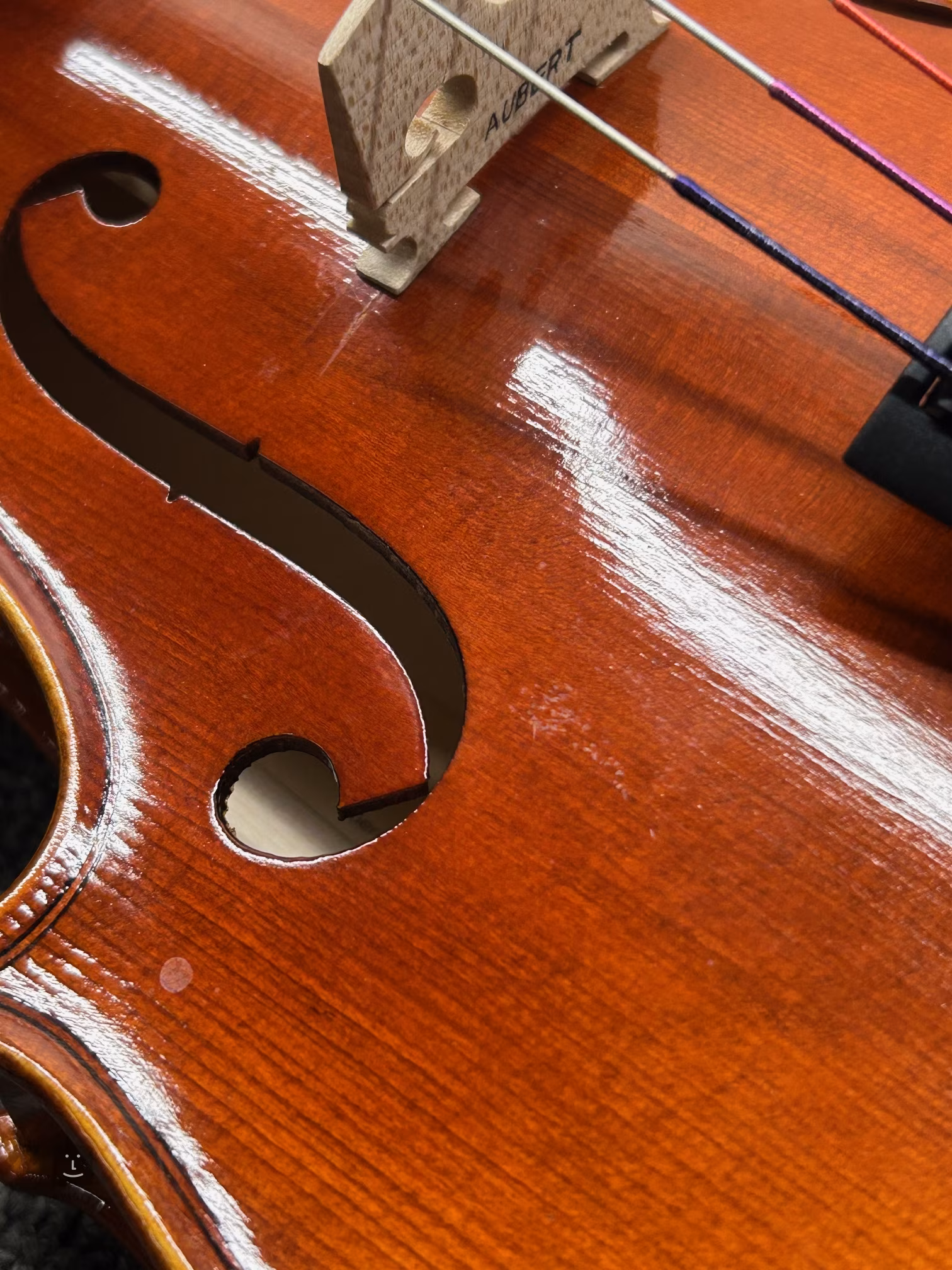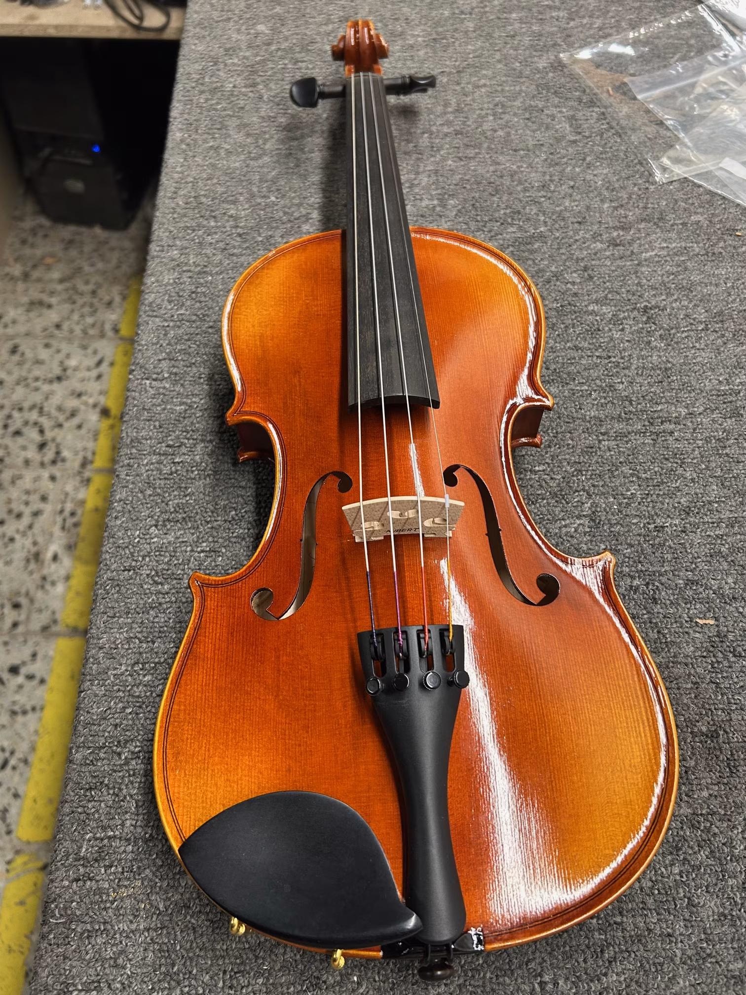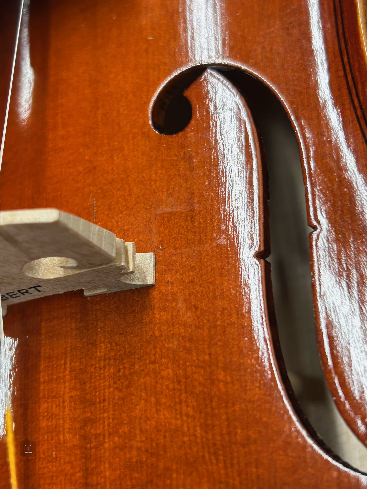 Spodní deska a luby jsou vyrobeny z masivního evropského javoru, horní deska zase z masivního evropského smrku. Nástroj je lakován ručně, červeno/hnědým přírodním pryskyřicovým lakem. Garnitura, podrbadek i hmatník jsou z ebenového dřeva.