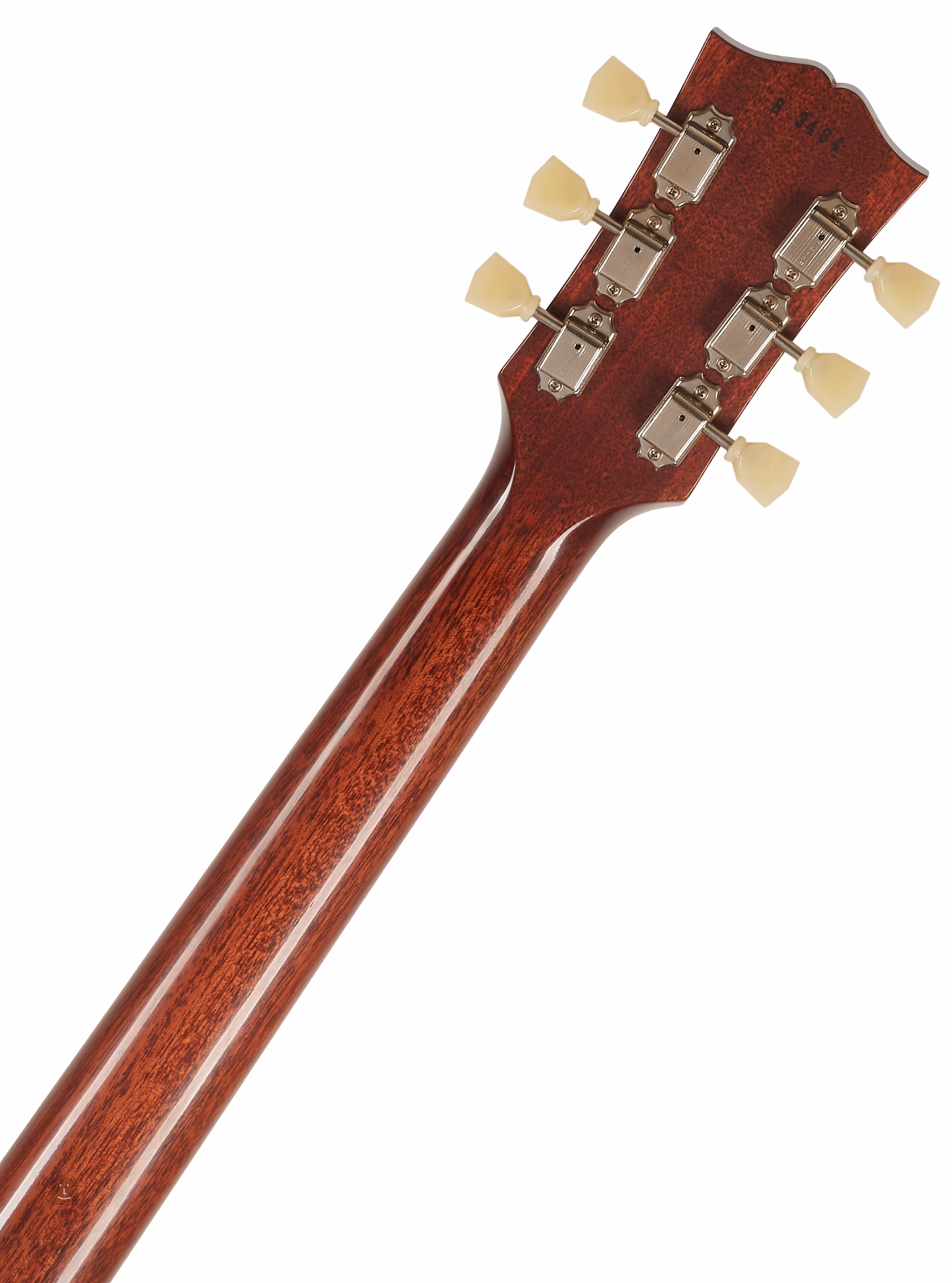 Masívne mahagónové telo je vybavené dvojdielnou vrchnou doskou z hladkého javora a povrchovou úpravou Bourbon Burst. Špeciálna povrchová úprava VOS (Vintage Original Specs) dodáva gitare autentický vzhľad a pocit originálov. K mahagónovému krku je prilepený palisandrový hmatník s dvadsiatimi dvoma pražcami (Historic Gibson Narrow/Tall). Polohové bloky (Aged Cellulose Nitrate Trapezoid) uľahčujú orientáciu po celej ploche hmatníka.