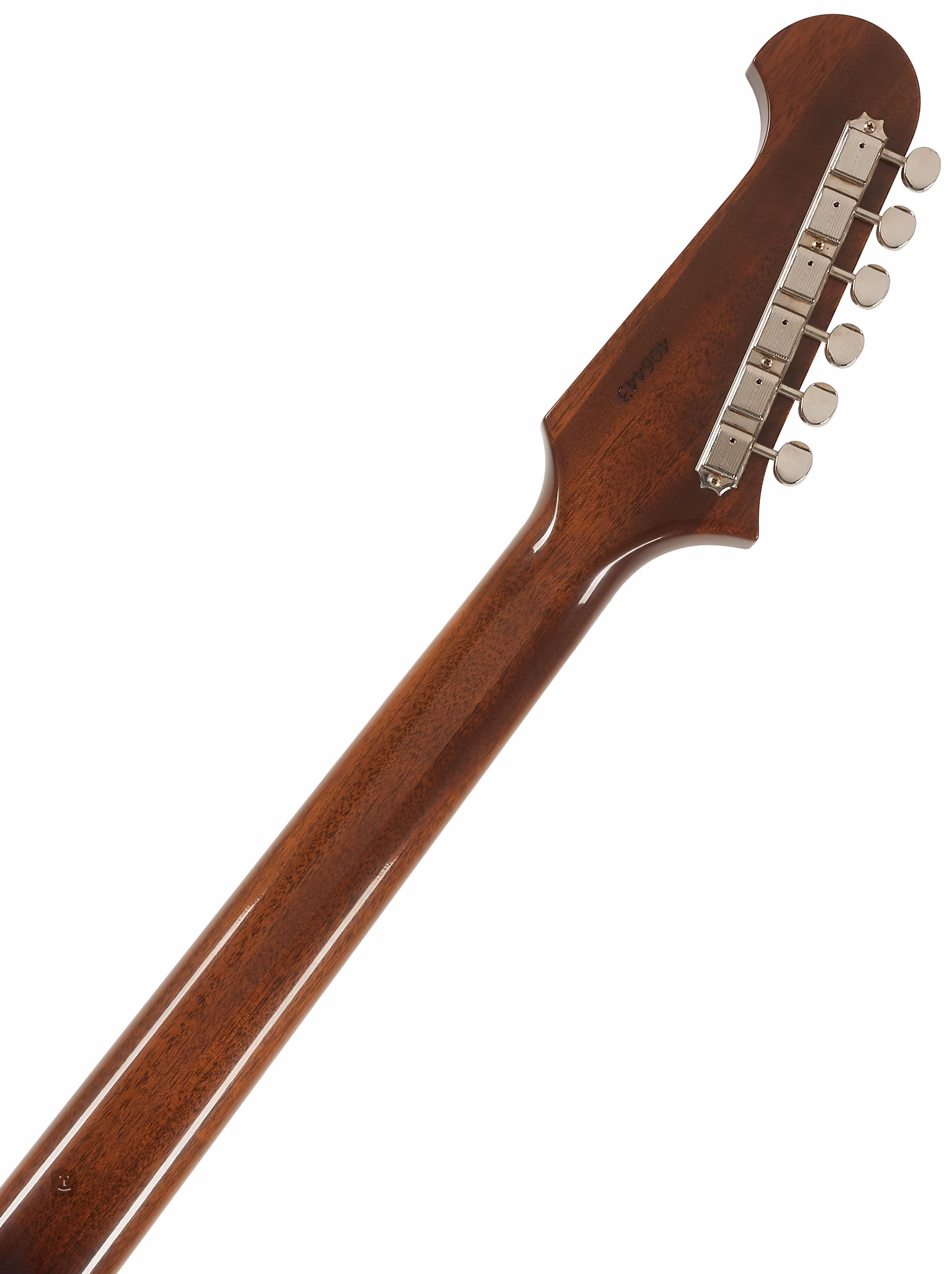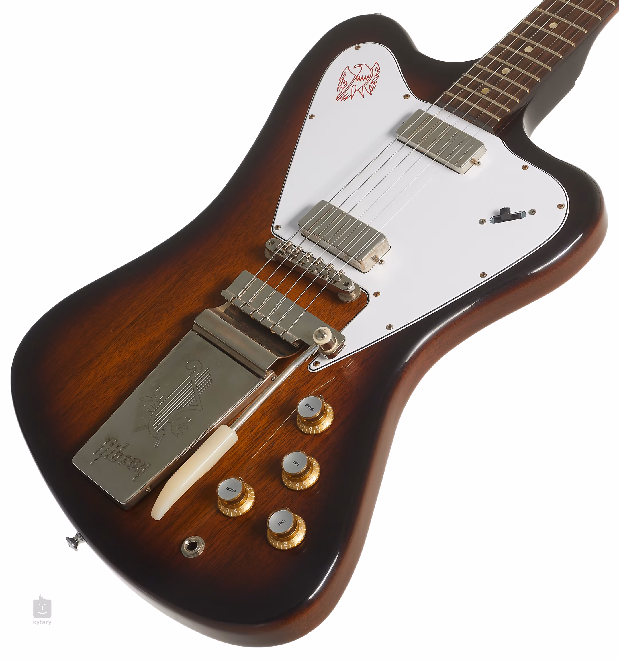 Elektrické gitary Gibson Firebird sú nezameniteľné vďaka svojmu jedinečnému tvaru inšpirovanému dizajnom automobilov zo 60. rokov. Model 1965 Non-Reverse Firebird V w/ Maestro Vibrola VOS Vintage Sunburst je historicky autentický "reissue" model z dielne Gibson Custom Shop, ktorý sa vracia k druhej verzii modelu Firebird z roku 1965 so zrkadlovým dizajnom tela bez reverzu.