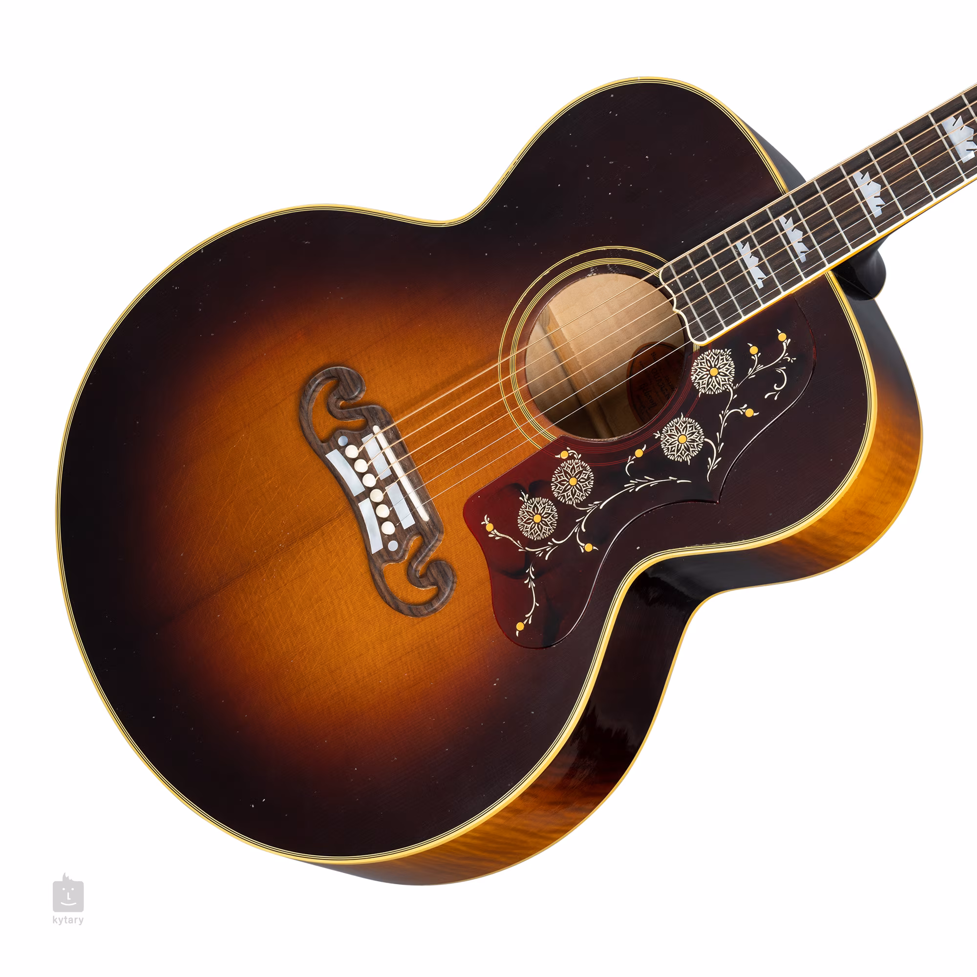 Akustická gitara 1957 SJ-200 Light Aged Vintage Sunburst z radu Murphy Lab Gibson Custom Shop sa vracia k historickému dizajnu Gibson Super Jumbo (SJ).