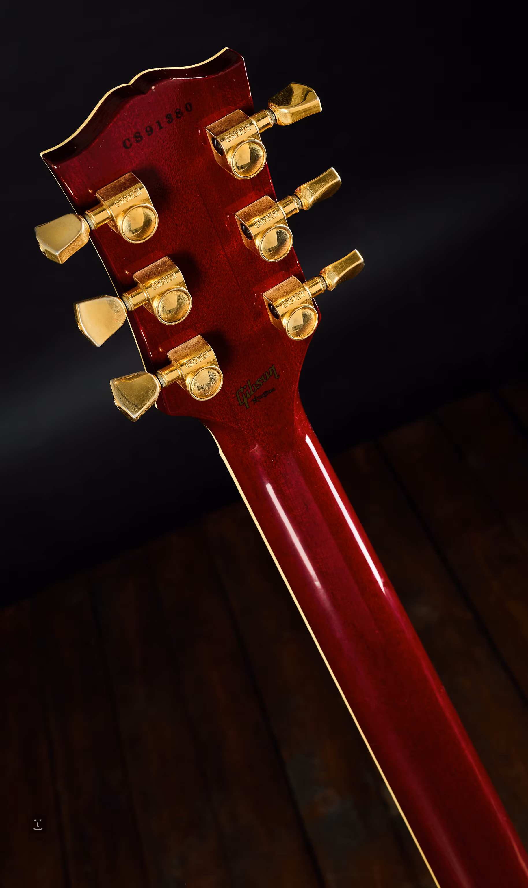 Pokud hledáte nástroj, který se bude ve vašich rukou ozývat prakticky sám a líbí se vám kombinace tmavě červeného laku a zlatého hardwaru, možná jste našli nástroj, který vám bude stačit do konce života. Tedy, pokud budete vy stačit jemu. Tento Gibson Les Paul Custom je postavený tak, abyste byli opravdu slyšet, aby nechal vyniknout i nejjemnějším tahům a finesám vaší hry.