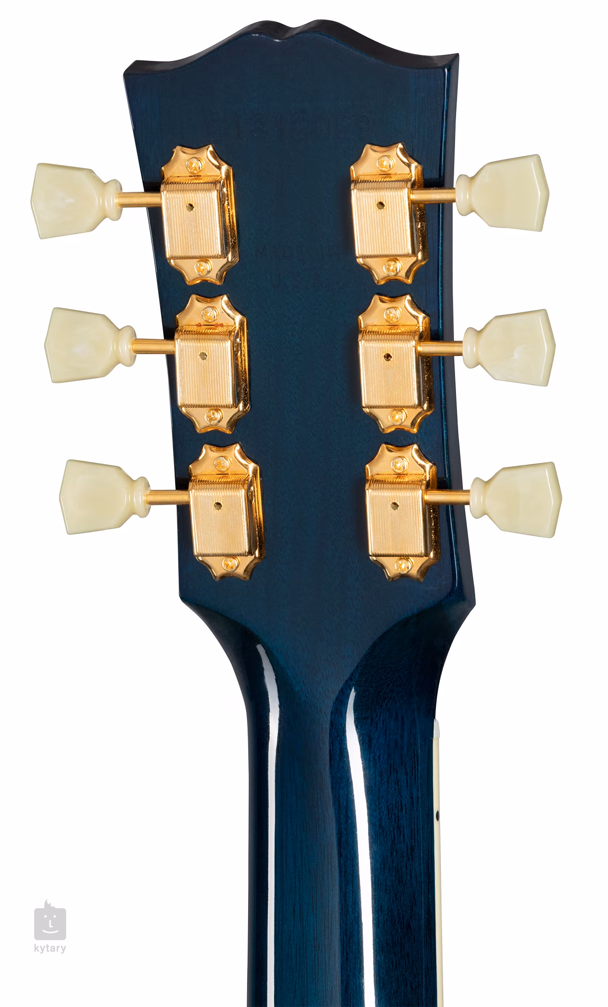 Struny sú uchytené v ladiacich mechanikách Gotoh s kolíkmi Keystone cez kostený pražec a palisandrový hmatník cez sedlo TusQ. Štýlovú povrchovú úpravu podčiarkuje zákazkový pickguard Bluebird inšpirovaný rovnomenným hitom Mirandy Lambert, perleťové logo Gibson a inkrustácia Crown (Mother of Pearl) na hlavici a obojstranné obvodové lemovanie tela.