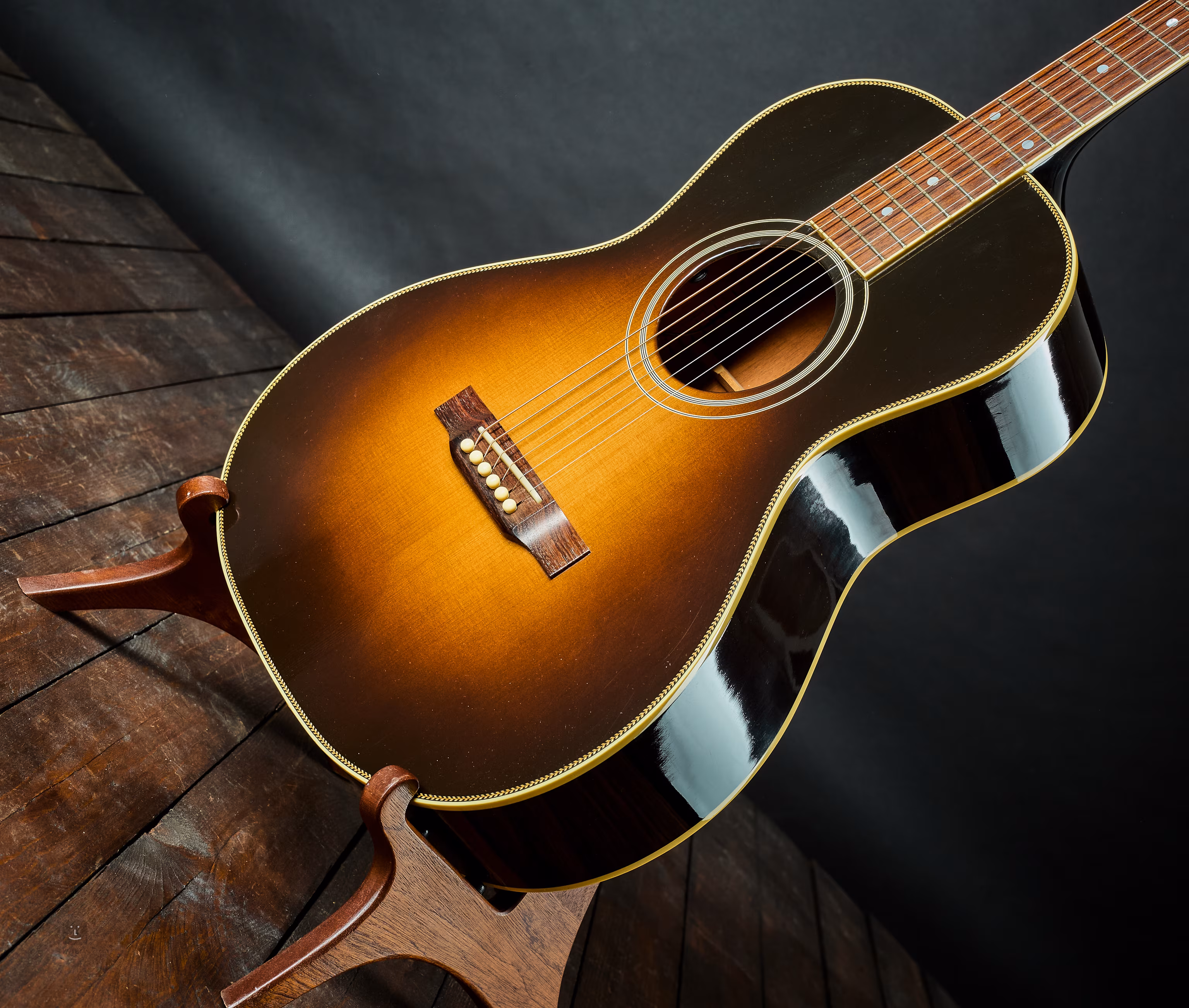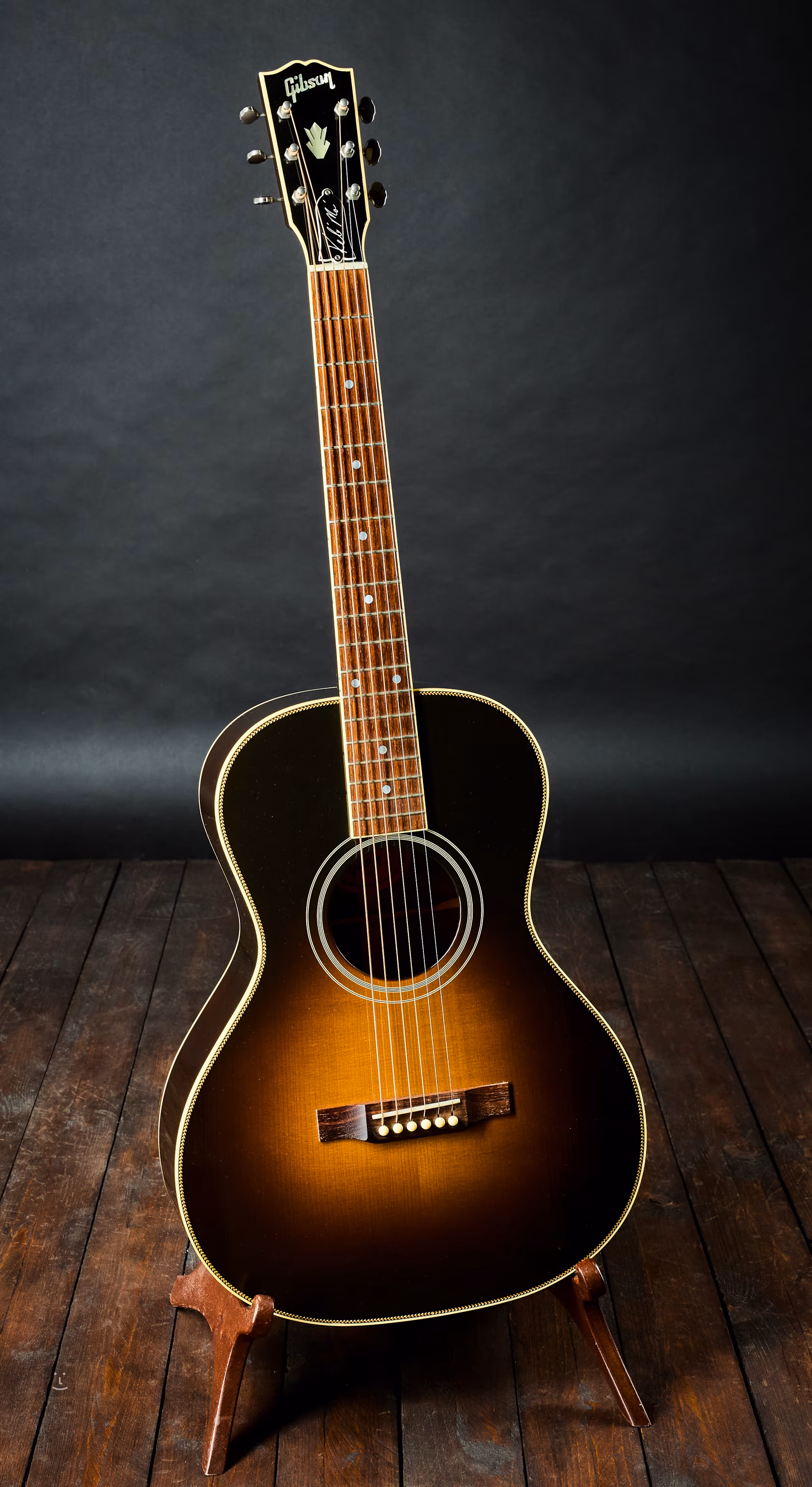 Malá akustická gitara v štýle, ktorý spája prvky modelov Parlor a Grand Concert, s krkom pripojeným pri 12. pražci. Vyrobená v Gibson Custom Shop v Bozemane v Montane v roku 2013.