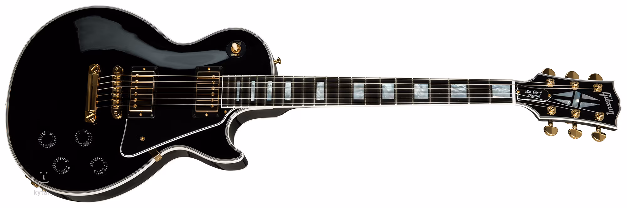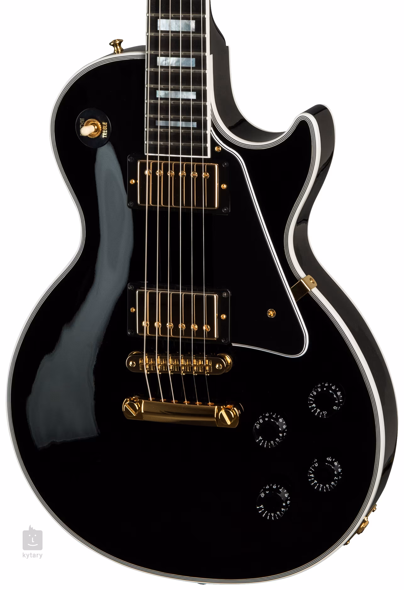 Mahagonové tělo elektrické kytary Les Paul Custom 70s Ebony zdobí top ze tří vrstev javoru, lesklý lak z nitrocelulózy a oboustranná lemovka. K javorovému krku s dobovým profilem je přilepen lemovaný ebenový hmatník osazený dvaadvaceti pražci velikosti Medium Jumbo. Orientaci na hmatníku usnadňují perleťové polohové bloky (Mother-of-Pearl).