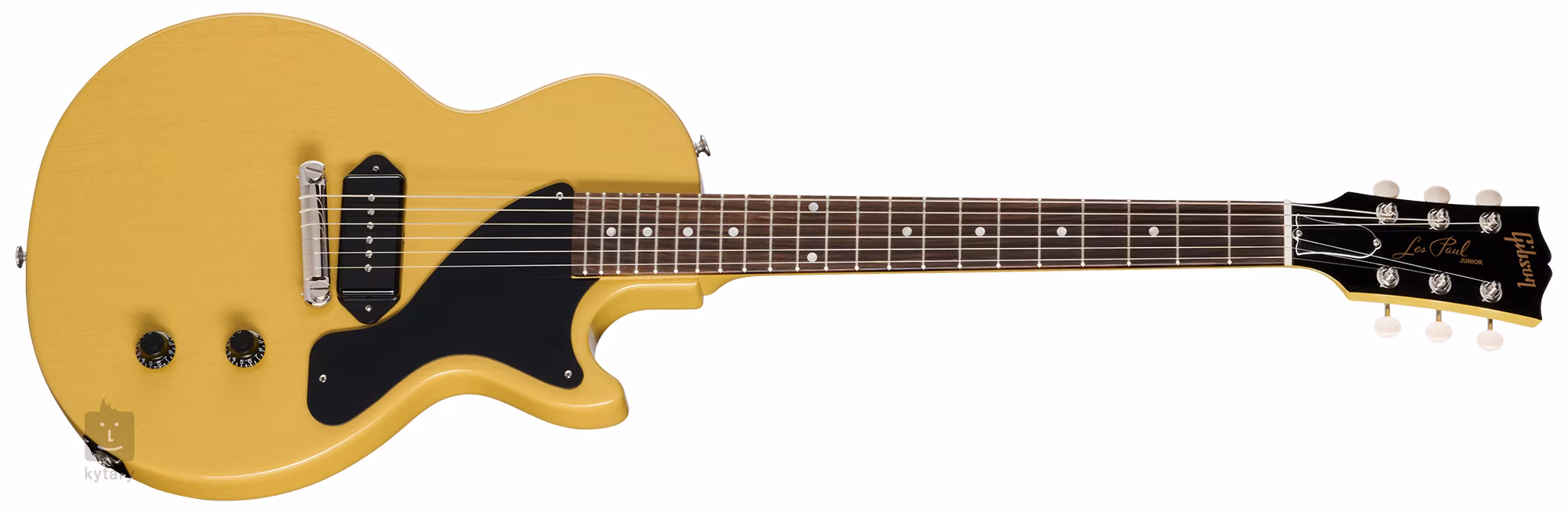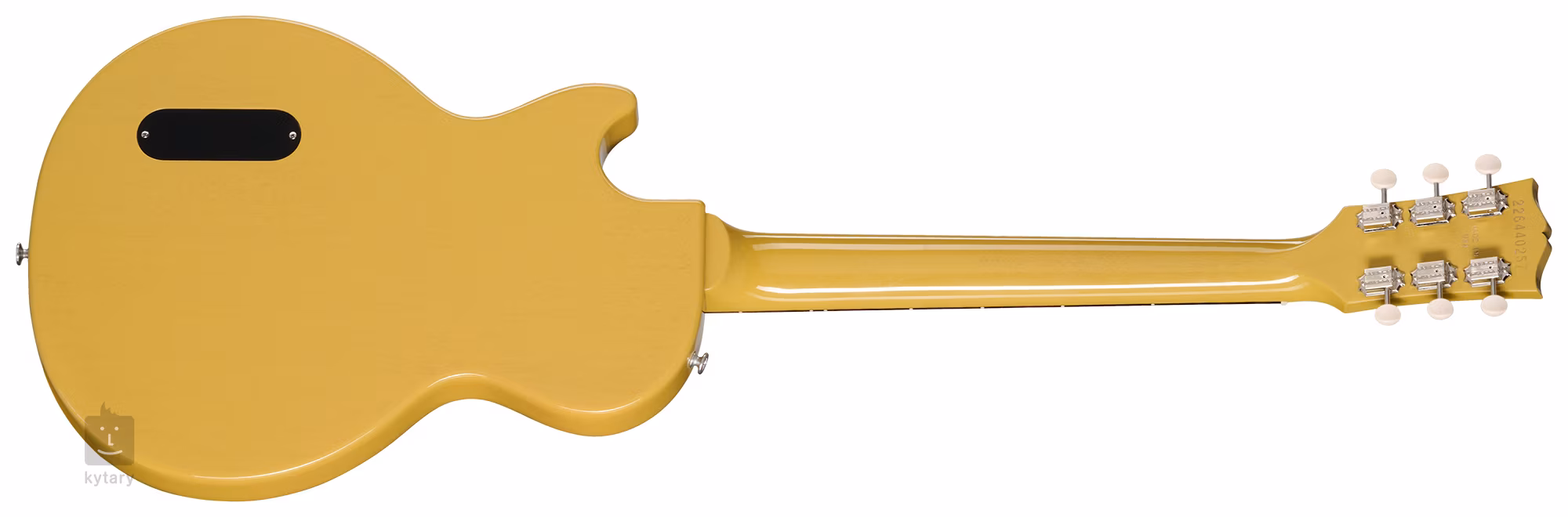 Elektrická gitara Les Paul Junior TV Yellow sa vracia k pôvodným modelom s jedným výrezom z roku 1954. Telo nástroja je vyrobené z mahagónu. Tenká vrstva nitrocelulózového laku umožňuje drevu gitary dýchať a zlepšuje zvukové vlastnosti nástroja. Mahagónový krk je prilepený k palisandrovému hmatníku s dobovo autentickým profilom Vintage 50s osadenému dvadsiatimi dvoma Medium Jumbo pražcami. Orientáciu na hmatníku uľahčuje imitácia perleťových polohových bodiek.