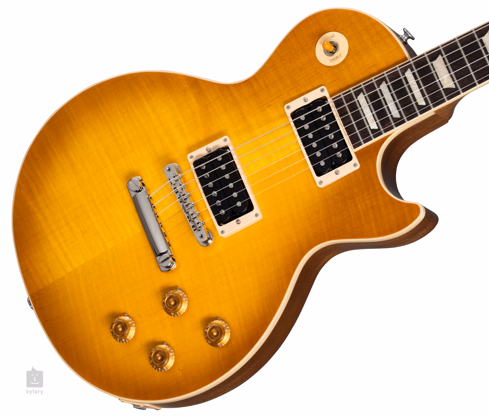 Elektrické gitary Gibson Les Paul Standard 50s sa vracajú k dizajnu zlatej éry rock'n'rollu, t. j. plne rešpektujú originály bez obetí v podobe ľahšieho materiálu alebo "ľahšieho" profilu krku. Jednoducho Gibson Les Paul v autentickom prevedení.