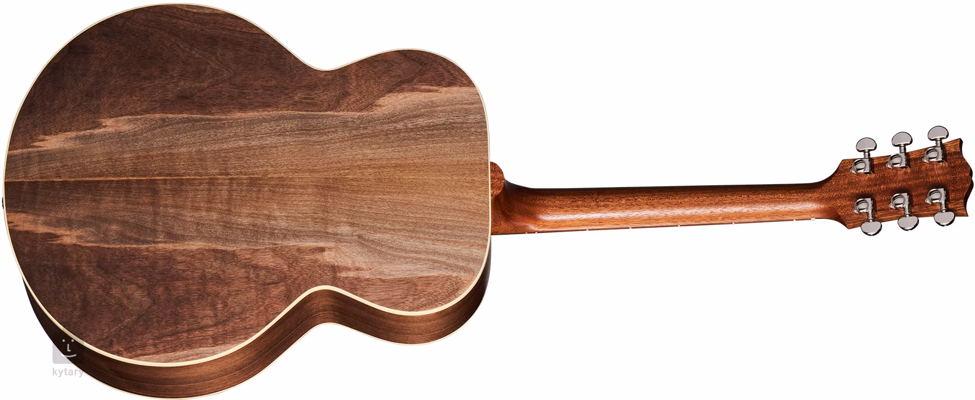 Predná doska elektroakustickej gitary SJ-200 Studio Walnut Walnut Burst je vyrobená z masívneho sitka, zadná doska a bočnice sú vyrobené z masívneho orecha. Kombinácia týchto materiálov a štandardná hĺbka veľkého tela Super Jumbo poskytujú gitare vyvážený bohatý zvuk s vynikajúcou hlasitosťou a projekciou, ktorý svojím tónom sedí niekde na pomedzí jasnosti javora a hĺbky palisandru. Rezonanciu prednej dosky podporuje ručne vyrezávané žebrovanie typu X, telo pokrýva tenká vrstva nitrocelulózového laku (predná doska lesklá, zadná doska a bočnice matné).