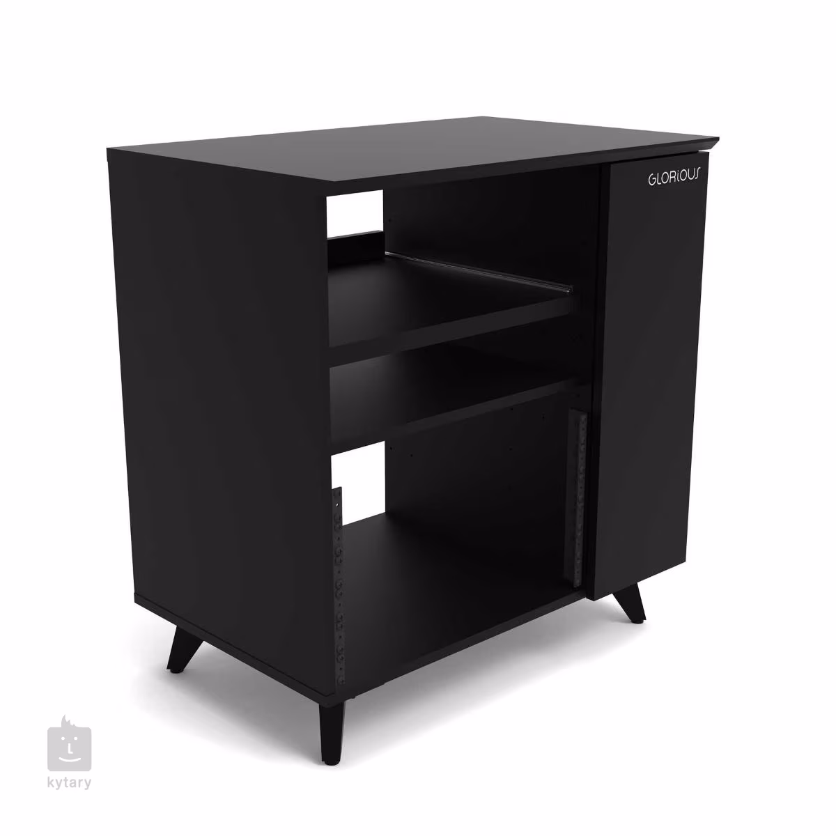 Žiadne dve nahrávacie štúdiá nie sú rovnaké, preto bol Glorious Modular Side Rack navrhnutý s ohľadom na maximálnu flexibilitu. Tento štýlový kus štúdiového nábytku je variabilný rack rozdelený na dve hlavné časti, ktoré dokonale doplnia rady Soud Desk a Wokbench. Väčšia (ľavá) časť sa skladá z priestoru pre rack (až 12U), ktorý možno čiastočne využiť na inštaláciu dvoch políc, z ktorých jedna je vybavená praktickým výsuvným mechanizmom. Obidve časti možno výškovo nastaviť, prípadne vybrať len jednu (alebo žiadnu), čím sa uprednostní priestor najmä pre regálové jednotky. Spôsob, akým navrhnete usporiadanie, potom priamo určuje možnosti usporiadania vášho zariadenia, pričom pevný policový diel môžete použiť na zariadenia, ku ktorým nepotrebujete stály prístup, zatiaľ čo výsuvnú podložku môžete použiť na kontroléry, bicie automaty, klávesy alebo dokonca gramofón. Na pravej strane komody sa nachádza užšia priehradka s dvierkami, ktorá je určená buď na uloženie LP platní, alebo na umiestnenie počítača. Menšia polička slúži na uloženie príslušenstva (napr. slúchadiel). Horná doska je potom k dispozícii pre iné potreby.