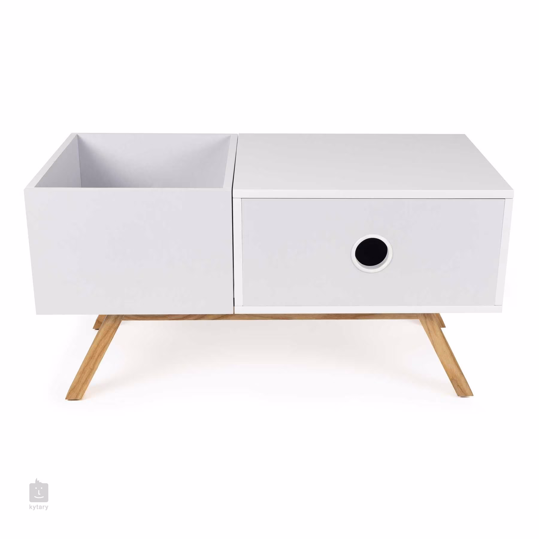 Nízka doska je vyrobená z vysokokvalitných materiálov a do otvorenej priehradky na platne sa zmestí až 130 platní. Skrinka je vhodná na uloženie zosilňovačov, CD alebo kníh. Na zadnej strane nájdete otvor na káble, takže ich nemusíte viesť po podlahe ani zložito pripevňovať k podlahovým doskám.