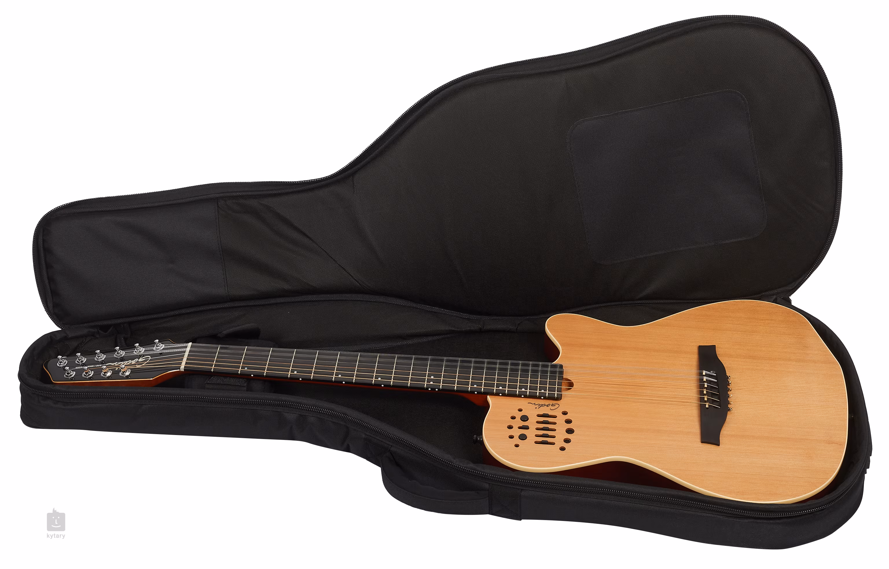 A 10 Natural Steel Mahogany Cedar SG je pomerne unikátna desaťstrunová elektroakustická gitara, ktorej dve vrchné struny sú trojito strunené, čo nástroju dodáva nádherný prirodzený chorusový efekt. Špeciálna elektronika Custom Godin s jednotlivými piezoelektrickými kameňmi ponúka možnosť vysokokvalitného ozvučenia, ako aj prepojenia prostredníctvom 13-pinového konektora so syntetizátormi.