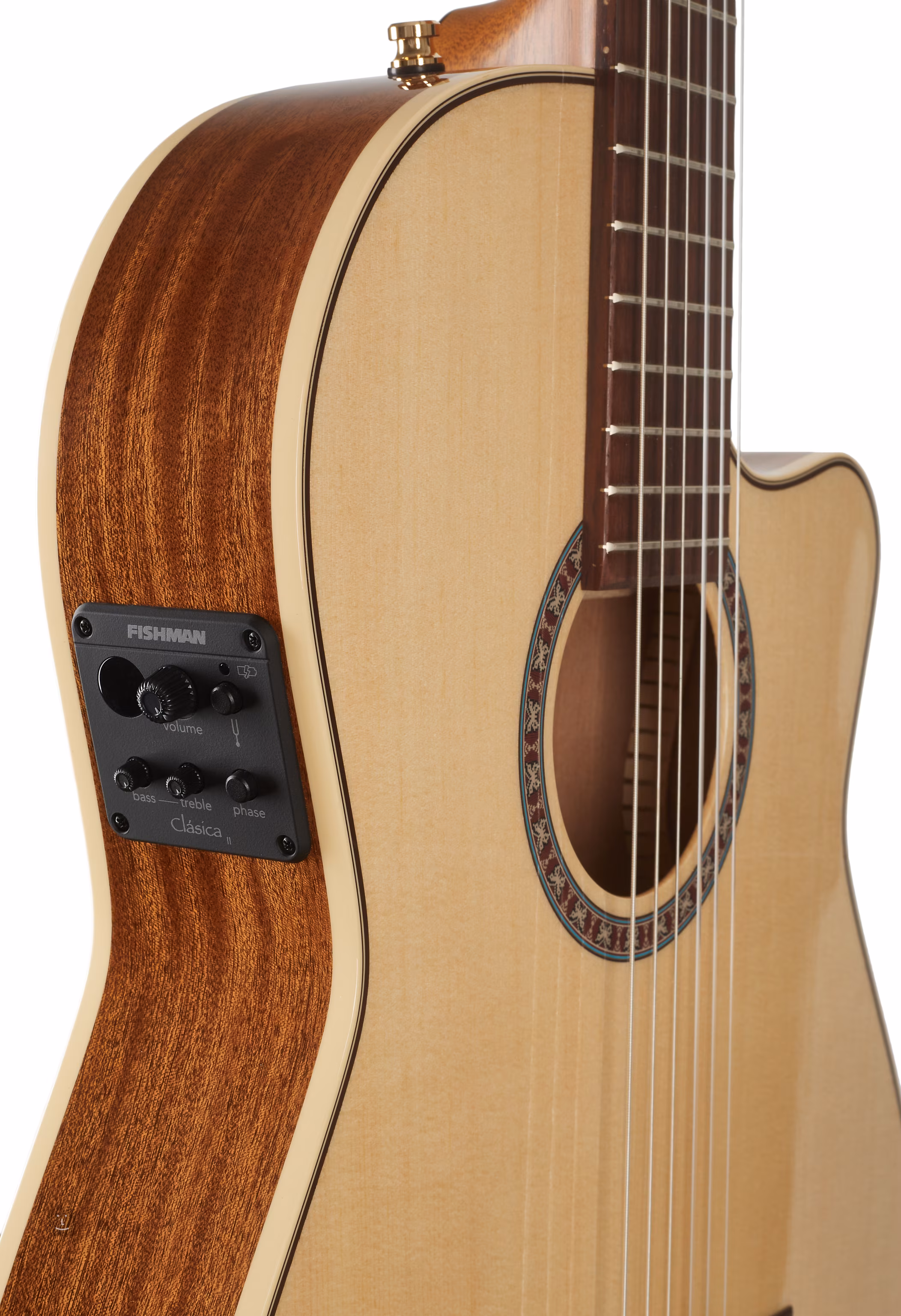 Možnosti ozvučenia zahŕňajú aktívnu elektroniku Fishman Clásica II s dvojpásmovým ekvalizérom, vstavanou ladičkou a ovládačom Phase na potlačenie spätnej väzby pri vyšších hlasitostiach. Struny sú uložené v ladiacich mechanikách s prevodovým pomerom 14:1 a palisandrovom hmatníku. Nádherné remeselné spracovanie gitary podčiarkuje prírodná povrchová úprava vrchnej dosky vyleštenej do vysokého lesku, obojstranná svetlá obvodová väzba tela, moderný dizajn hlavice a ozdobná rozeta.