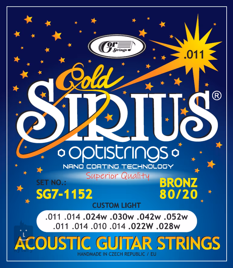 Struny SIRIUS majú na českom trhu dlhú tradíciu a sú veľmi obľúbené najmä medzi trampmi a folkovými hudobníkmi. Ich veľkým lákadlom je nielen priaznivá cena, ale aj príjemný zvuk a pohodlná hra. Táto nová séria Sirius Gold sa však od pôvodných strún Sirius v niekoľkých ohľadoch líši. Struny majú šesťhranné jadro obalené obľúbenou bronzovou zliatinou (80/20), vďaka čomu majú jasný, zvonivý zvuk, ktorý vynikne pri každom táboráku. Navyše sú potiahnuté špeciálnym antikoróznym povlakom, ktorý výrazne predlžuje ich životnosť. Výsledkom je úplne nová generácia strún Optistrings, ktorá vyniká brilantným, teplým zvukom, vysokou odolnosťou a extrémne dlhou životnosťou.