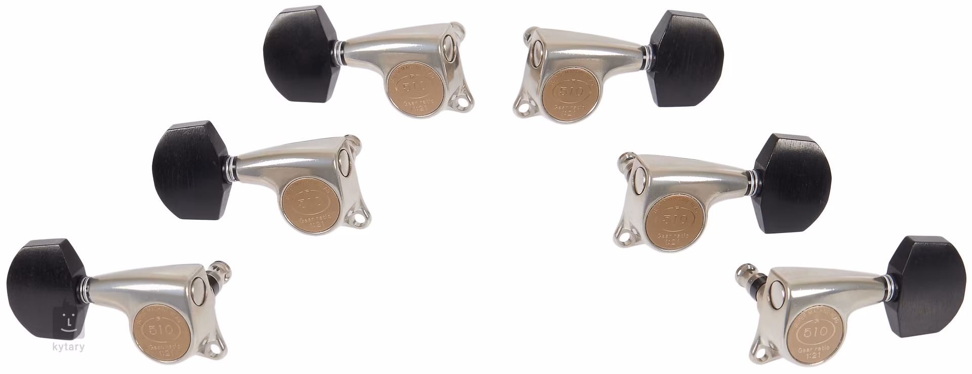 Kompletná náhradná sada (6 ks) kvalitných ladiacich mechaník Gotoh 510 s prevodovým pomerom 1:21 a brúsenými ebenovými gombíkmi. Ide o originálny diel pre všetky gitary Furch Yellow vyrobené od roku 2022 a modely zo série Red. Mechaniky sú kompatibilné aj so staršími modelmi zo série Yellow a vyradenými modelmi zo série Orange, 23, 24 a 25. Súčasťou balenia je kompletná sada mechaník vrátane skrutiek a matíc.