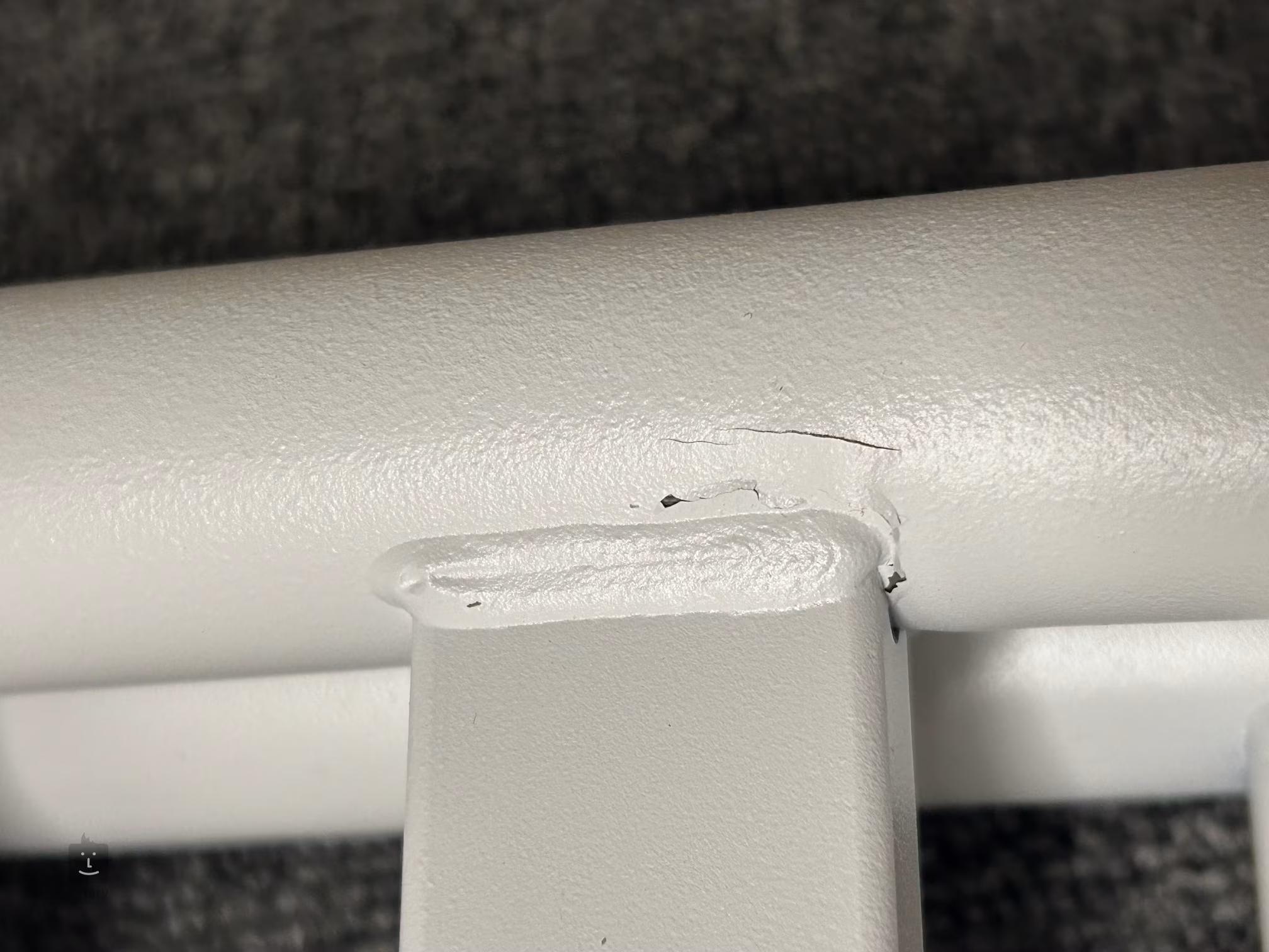 Povrchové praskliny na spoji v spodnej časti stojana (pozri fotografiu). Inak v poriadku a plne funkčný.