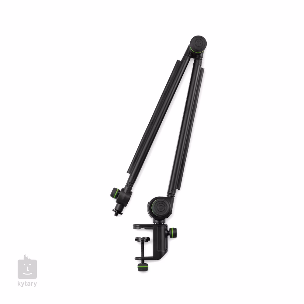 Vysoko prenosný a kompaktný mikrofónový stojan vhodný pre vysielanie, nahrávanie podcastov alebo domáce nahrávacie štúdio. Stojan je vyrobený z odolného hliníka a možno ho namontovať na dosku stola alebo na rúru s priemerom 15 až 54 mm. Nastaviteľné rameno krku potom umožňuje nastaviť požadovaný sklon, čím sa zabezpečí čo najlepší príjem signálu. Stojan sa dá otočiť o 90 stupňov a je vybavený aj koľajničkou na dokonalé vedenie káblov.