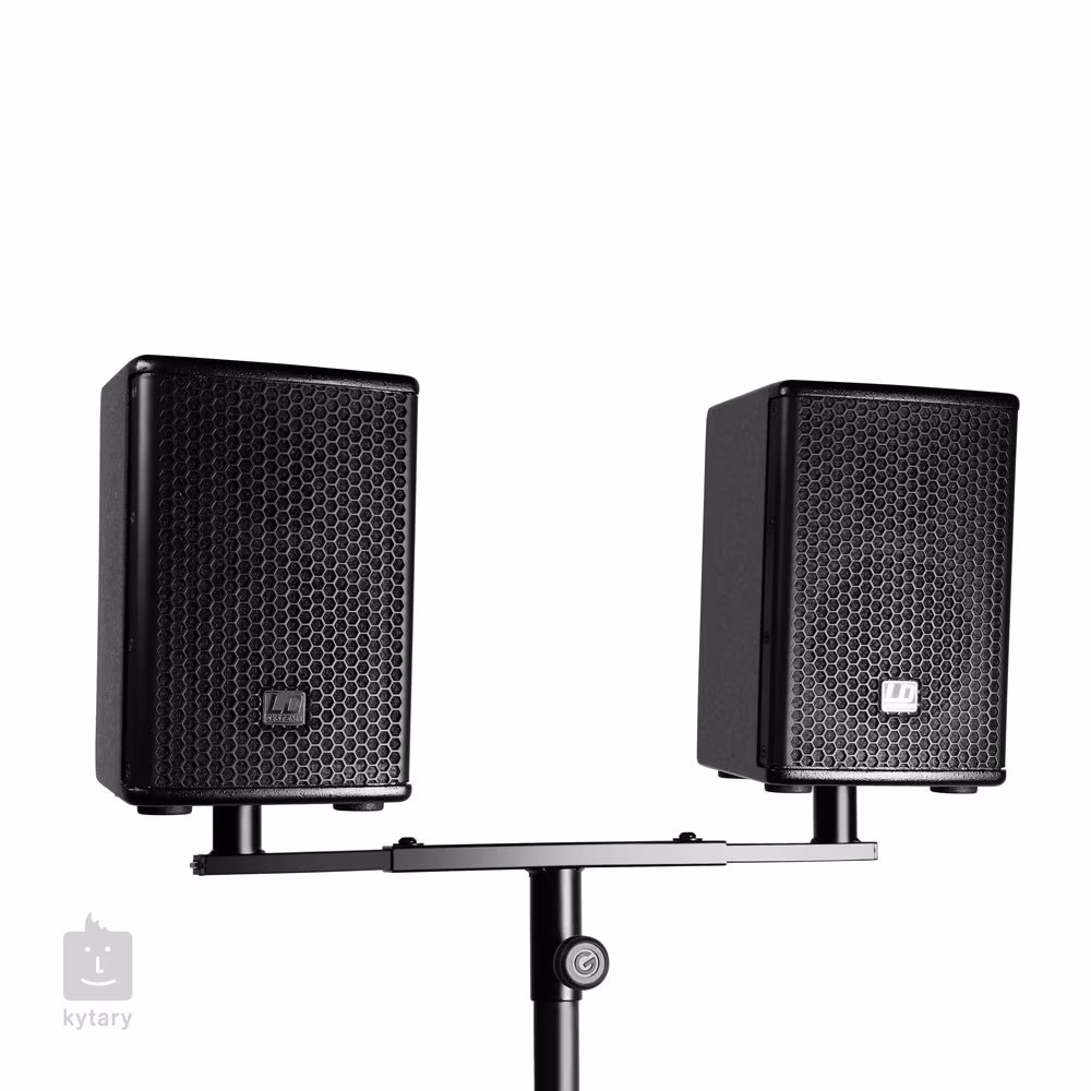 Robustný, odolný oceľový nadstavec pre dva reproduktory s 35 mm otvorom. Nadstavec ľahko umiestnite na stojan reproduktora a pomocou závitov s ergonomickou rukoväťou upravte vzdialenosť medzi oboma držiakmi.