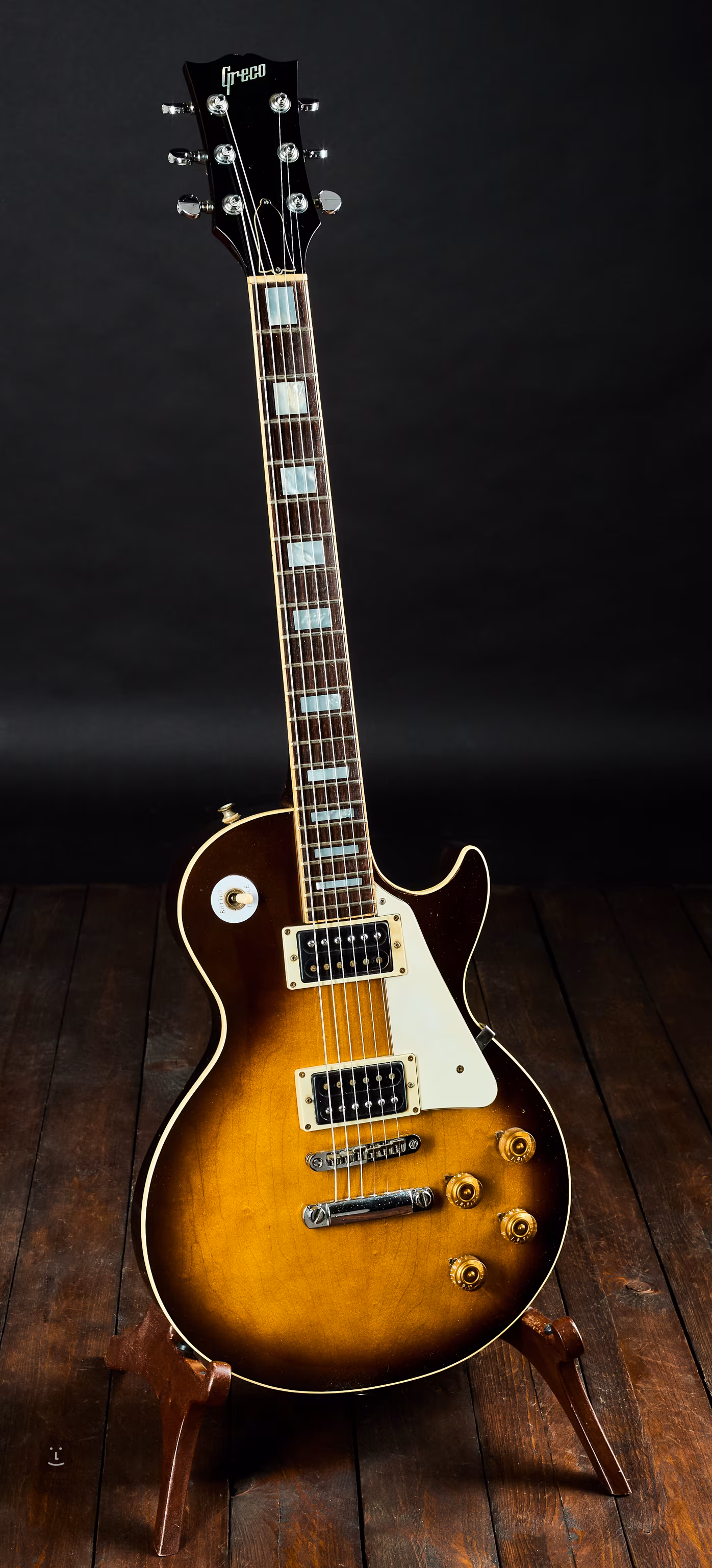 Lawsuit les paul od japonské značky Greco s tradiční lepenou konstrukcí. Tenký profil krku podle modelů z 60. let.
