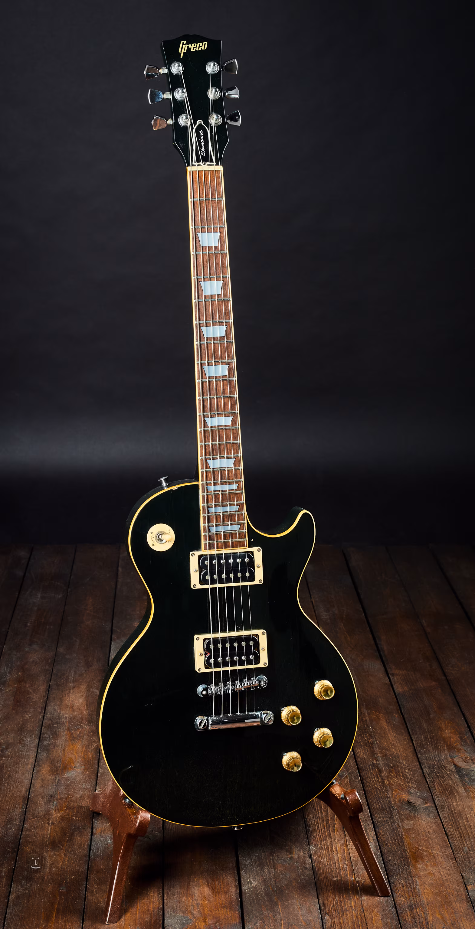Žaloby LP od japonskej značky Greco, vyrobené v Japonsku v roku 1977. Model s dutou prednou časťou (vrchná časť je vyrobená z laminovaného javora).