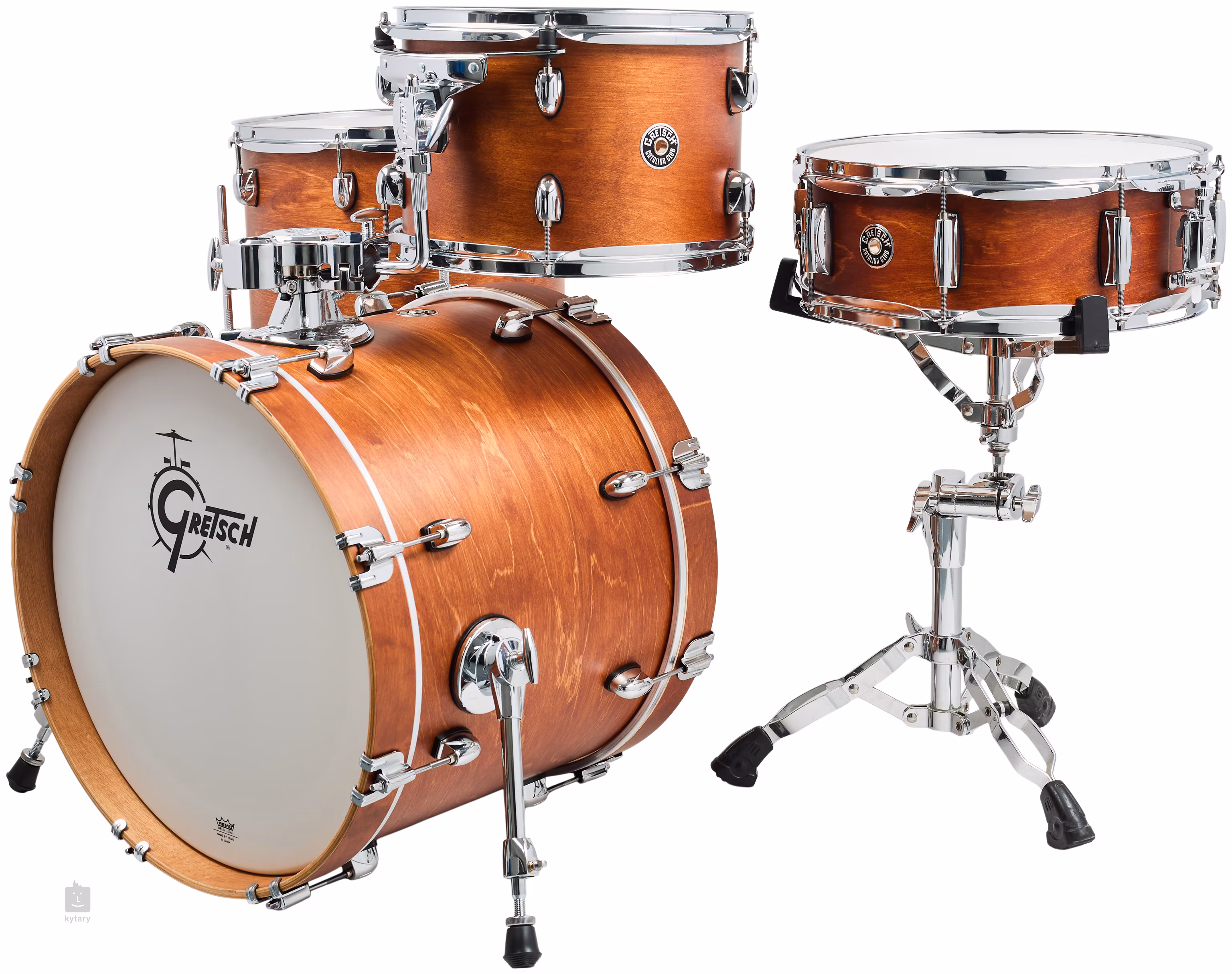 Drevené korpusy sú vyrobené podľa klasickej receptúry mahagónu Gretsch s prirodzenou vnútornou povrchovou úpravou a 30-stupňovými skosenými hranami, ktoré prispievajú k plnému a vyváženému tónu. Basové bubny sú vybavené teleskopickými nohami a ladenými drevenými obručami, zatiaľ čo tomy a snare bubny majú 1,6 mm trojito ohnuté obruče pre maximálnu odolnosť a presnosť ladenia.