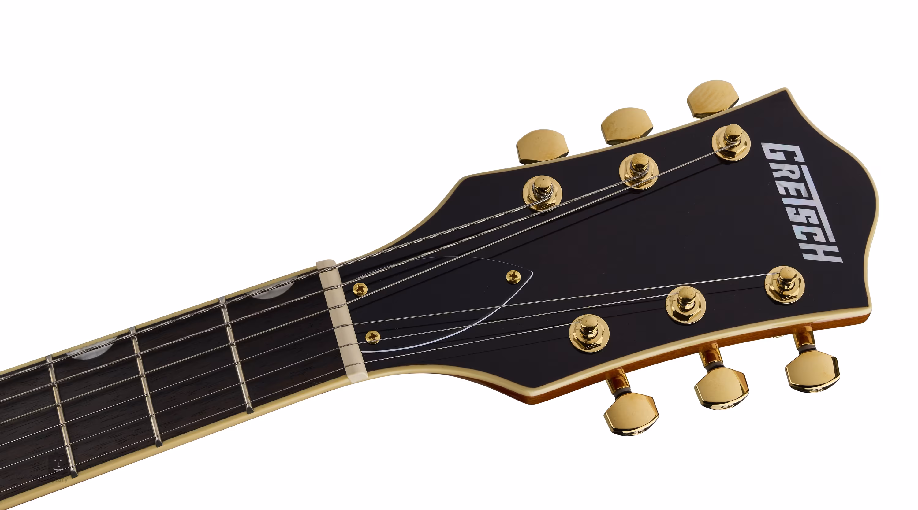 Struny sú uchytené v uzamykateľných die-cast mechanikách a cez kobylku Adjusto-Matic v licencovanom tremole Bigsby B70. Štýlovú povrchovú úpravu podčiarkuje zlatý hardvér a pickguard Gold Plexi so zlatým logom Gretsch.