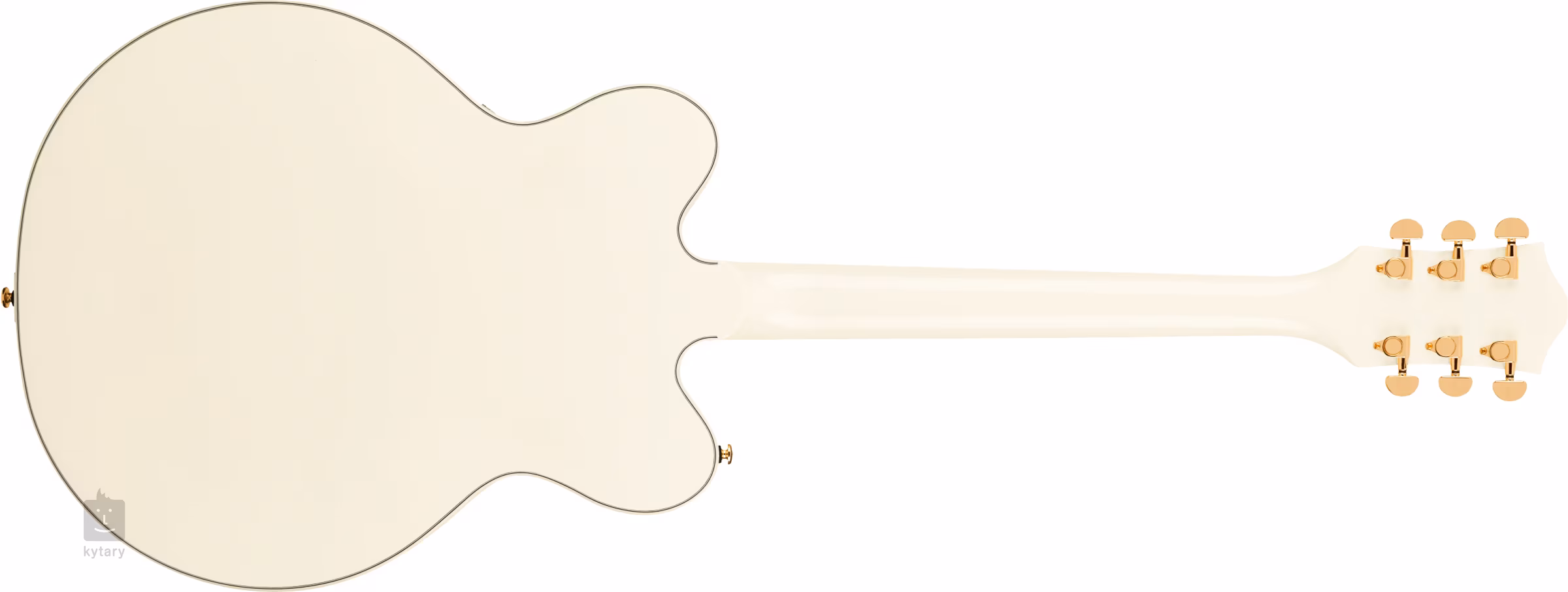 Telo gitary G2622TG Streamliner Centre Block Double-Cut s Bigsby LTD Vintage White z limitovanej edície tejto značky je vyrobené z laminovaného javora. Komorový stredový blok posilňuje vrchnú dosku gitary a pomáha eliminovať nežiaduce spätné väzby. Mäkký krk v tvare C je vybavený figovým hmatníkom s 22 strednými jumbo pražcami. Polohové značky z imitácie perlete uľahčujú orientáciu na hmatníku.