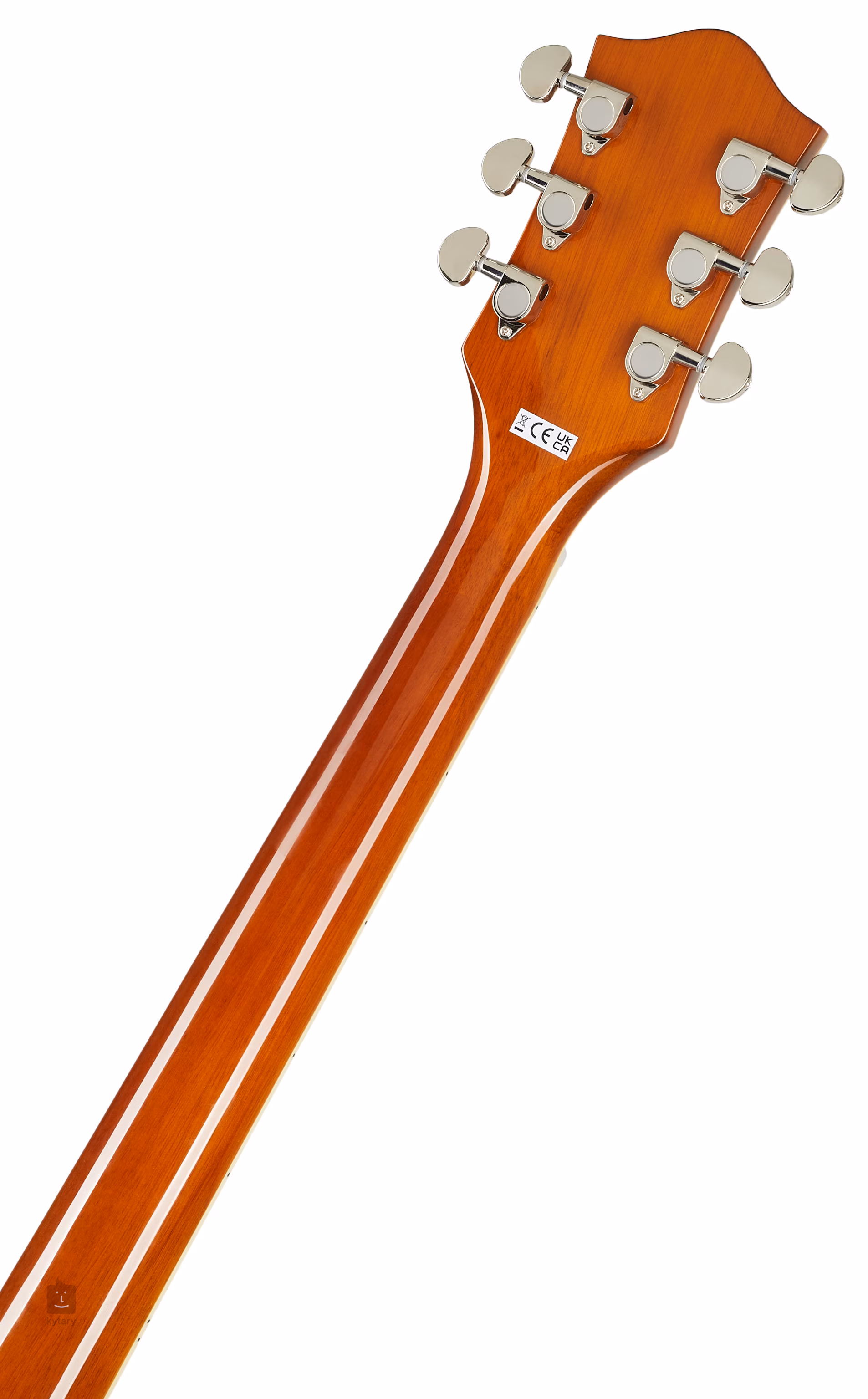 Presné ladenie zaručuje uchytenie strún prostredníctvom nultého pražca z umelej kosti v ladiacich mechanikách Die-Cast a hlavici Adjusto-Matic. Licencované tremolo Bigsby B50 dodáva vašej hre jemné zvukové efekty. Klasický oku lahodiaci dizajn gitár Gretsch podčiarkuje množstvo štýlových prvkov - od rozšírených F otvorov pre lepšiu akustickú projekciu, štylizovaných rámčekov snímačov, elegantného lemovania s jemným nádychom patiny (Aged White) doplneného čiernymi a bielymi linkami, niklového hardvéru, jednovrstvového pickguardu z imitácie korytnačky až po pôsobivú povrchovú úpravu.
