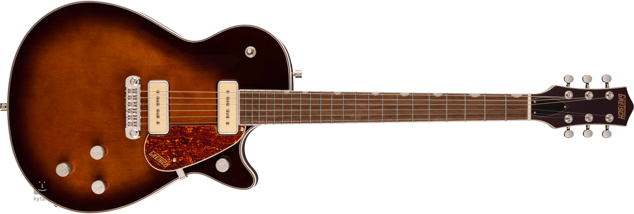 Struny sú uchytené vo firemných Die-Cast ladiacich mechanikách a v pevnej hlavici (Adjustable Wrap-Around). Štýlový dizajn nástroja podčiarkujú tradičné prvky v podobe svetlého obalu tela doplneného čiernymi a bielymi linkami, niklového hardvéru a pickguardu z imitácie korytnačiny so zlatým logom Gretsch.