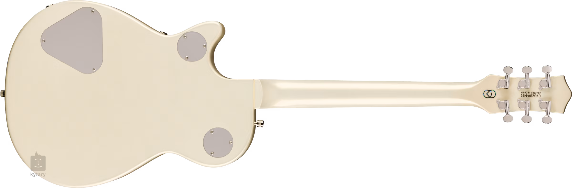 Struny sú uchytené vo firemných Die-Cast ladiacich mechanikách a cez kobylku Adjusto-Matic v Bigsby tremole. Štýlový dizajn nástroja podčiarkuje efektná povrchová úprava 2-Tone Stone Platinum over Pearl Platinum, chrómový hardvér a strieborný plexi pickguard s čiernym logom Gretsch.