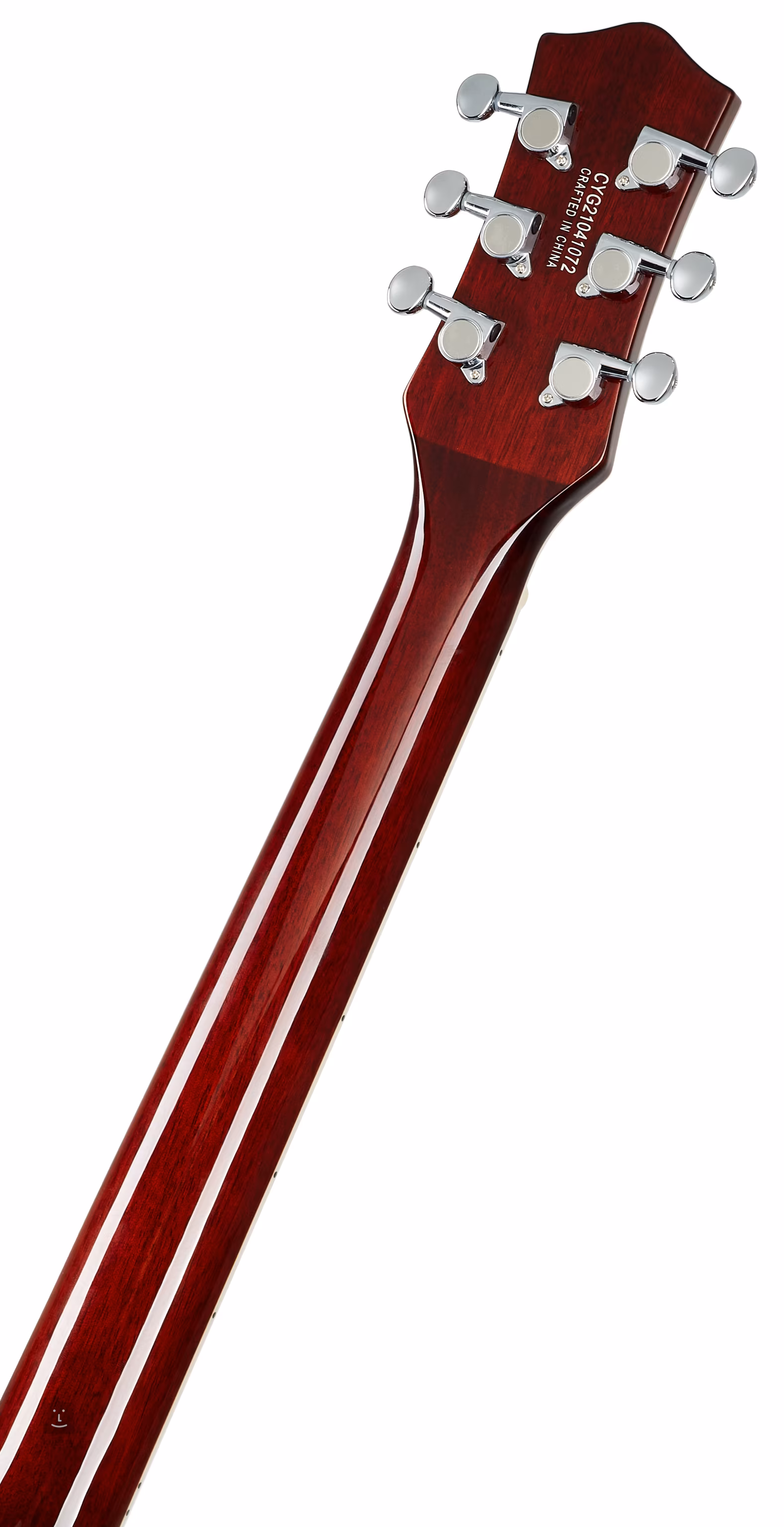 Struny sú uložené v patentovaných ladiacich mechanikách die-cast a tremole Bigsby. Štýlový dizajn nástroja vhodne dopĺňa chrómový hardvér a strieborný plexi pickguard s čiernym firemným logom Gretsch.