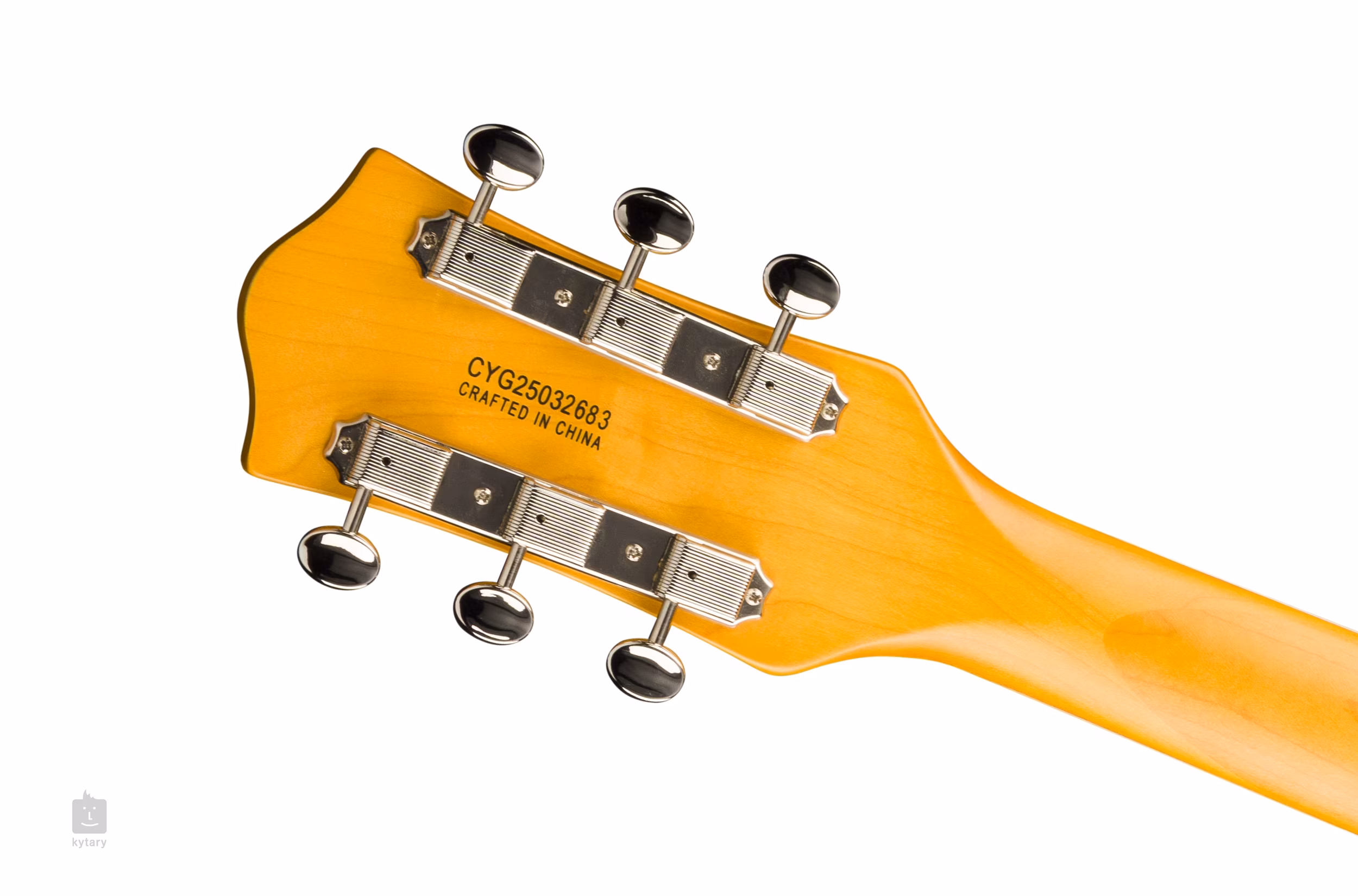 Olšové tělo v double-cut designu vychází z tvaru vintage kytar Gretsch Princess. K přišroubovanému javorovému krku s pohodlným “C” profilem je přilepen palisandrový hmatník osazený dvaadvaceti pražci velikosti Medium Jumbo. Orientaci na hmatníku usnadňují polohové značky z imitace perleti (Pearloid Neo-Classic) a boční černé tečky.