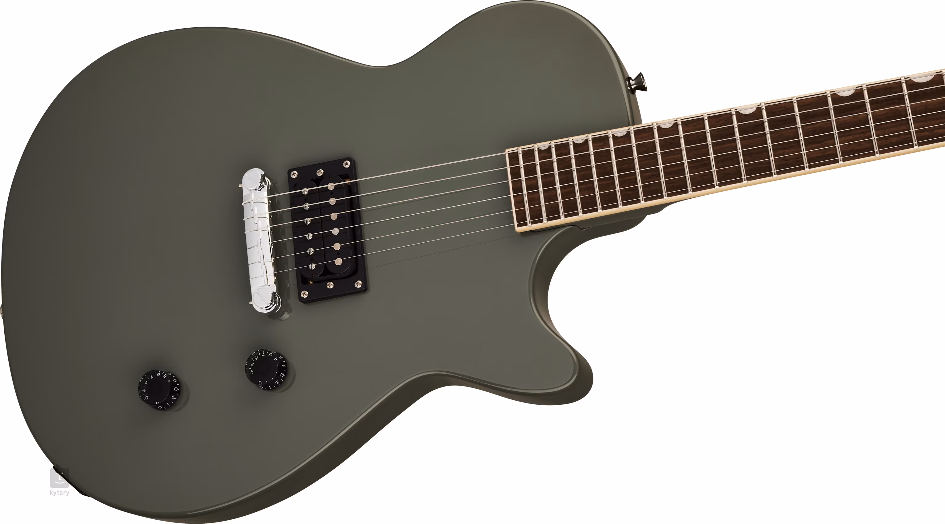 Mahagonové tělo kytary Streamliner Jet Club 1 Pickup LRL Olive Drab kryje polyesterový lak. K přišroubovanému mahagonovému krku se zakulaceným rychlým Fast “C” profilem je přilepen hmatník z fíkovníku osazený dvaadvaceti pražci velikosti Medium Jumbo. Výřez těla (belly cut) a zaoblená patka zvyšují herní komfort, orientaci na hmatníku usnadňují offset polohové značky z imitace perleti (Neo-Classical Thumbnail).