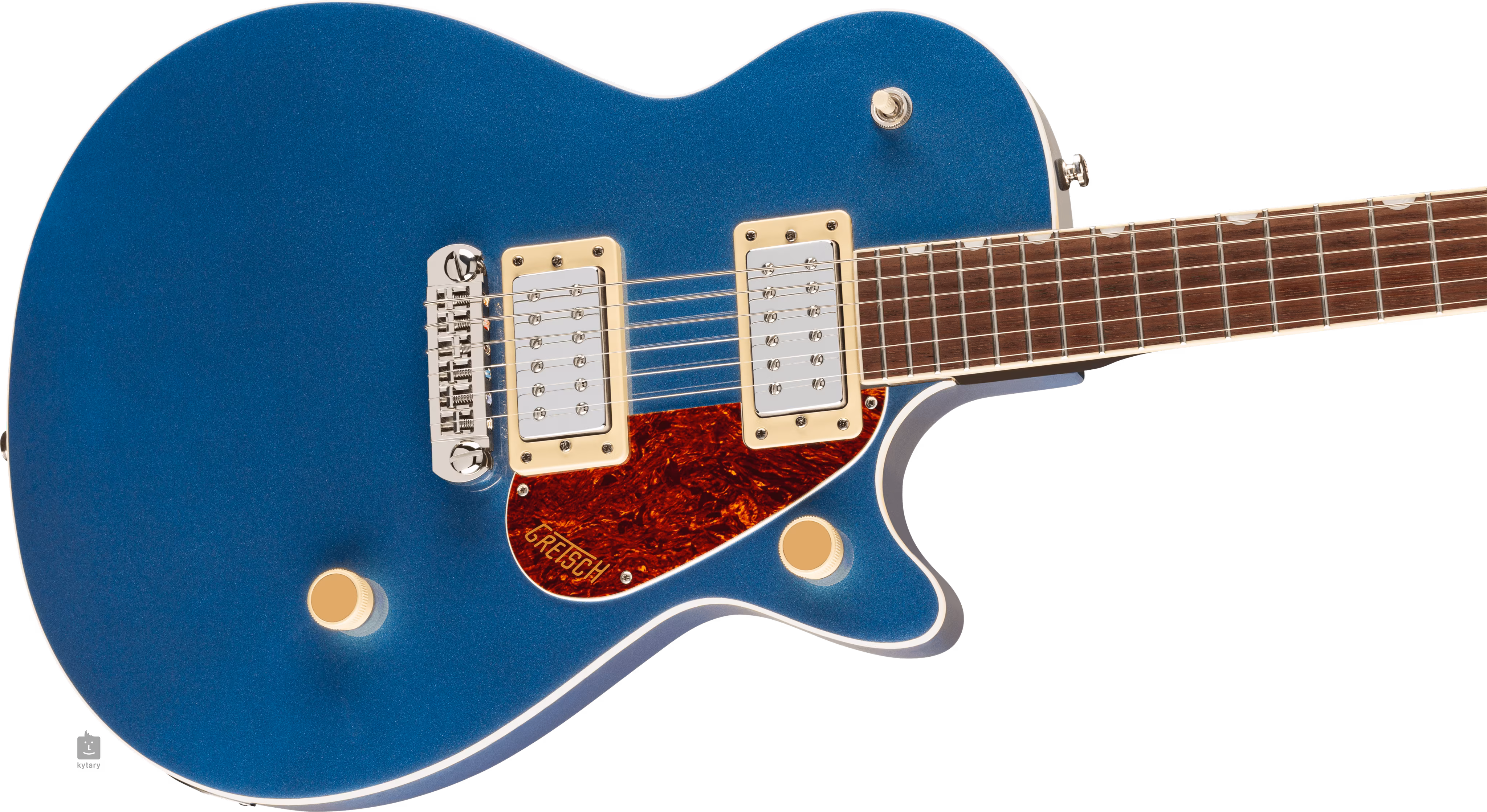 Jet Club sa od modelov Junior odlišuje dvoma novo navrhnutými humbuckermi Twin Six. Charakter zvuku upravíte pomocou ovládačov hlasitosti a tónovej clony a trojpolohového prepínača snímačov. Stabilné ladenie zaručuje uchytenie strún prostredníctvom kosteného nultého pražca vo firemných die-cast ladiacich mechanikách a v nastaviteľných strunníkoch Wrap-Around. Pekné spracovanie podčiarkuje niklový hardvér, svetlé viazanie (aged white) a pickguard z imitácie korytnačiny so zlatým logom Gretsch.