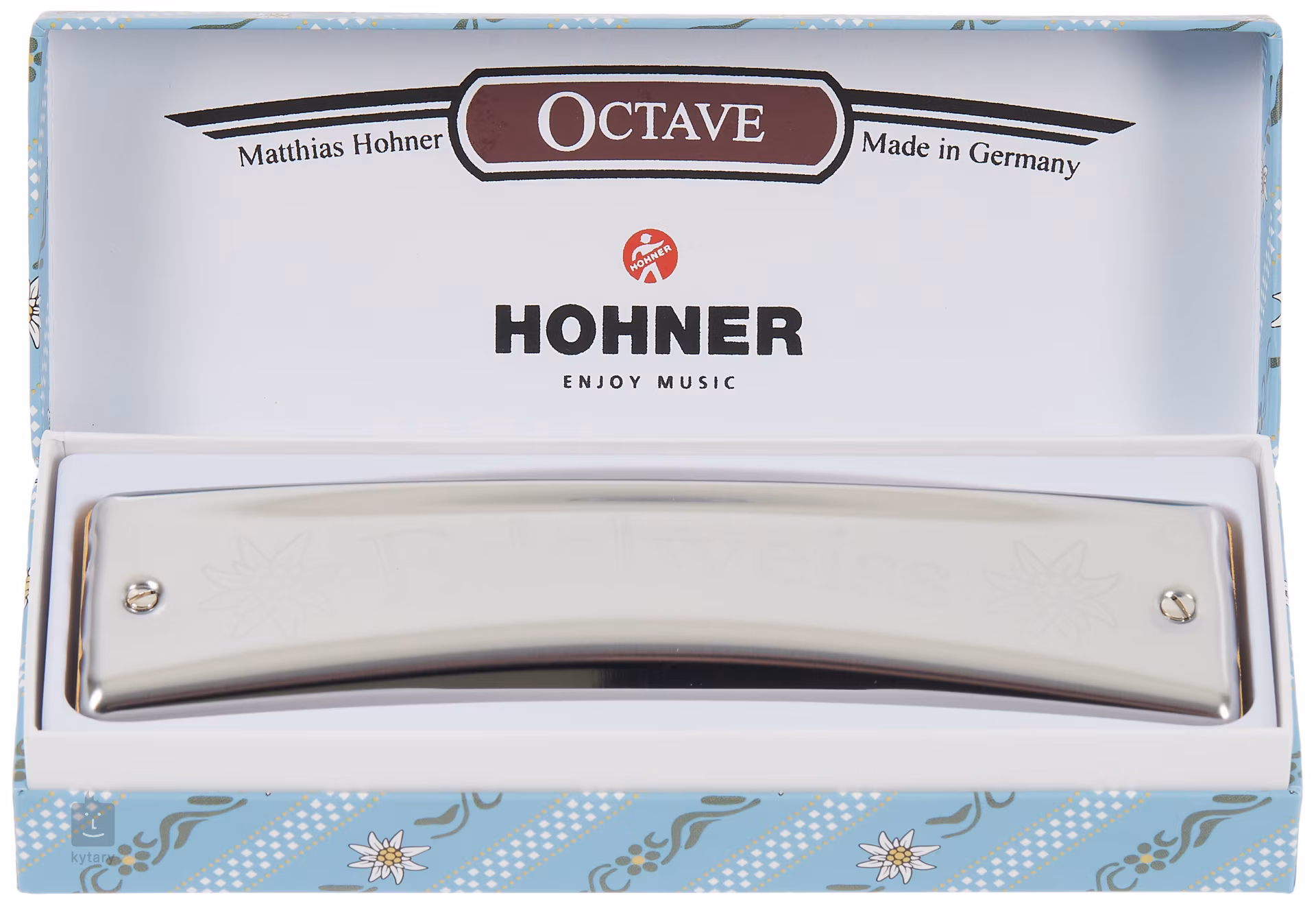 Oktávová harmonika EDELWEISS 32 C je nástroj inšpirovaný alpským horským kvetom, ktorý oceníte pri hraní alpských melódií, ľudovej hudby a nadčasových evergreenov. Jej zakrivený tvar dokonale sedí na perách a poskytuje hráčom výnimočný komfort. Otvory harmoniky sú, podobne ako u tremolo modelov, rozdelené na dve polovice, pričom plátky každej dvojice sú naladené presne o oktávu od seba. Fúkaním cez oba kanáliky súčasne vzniká charakteristický dvojitý zvuk.