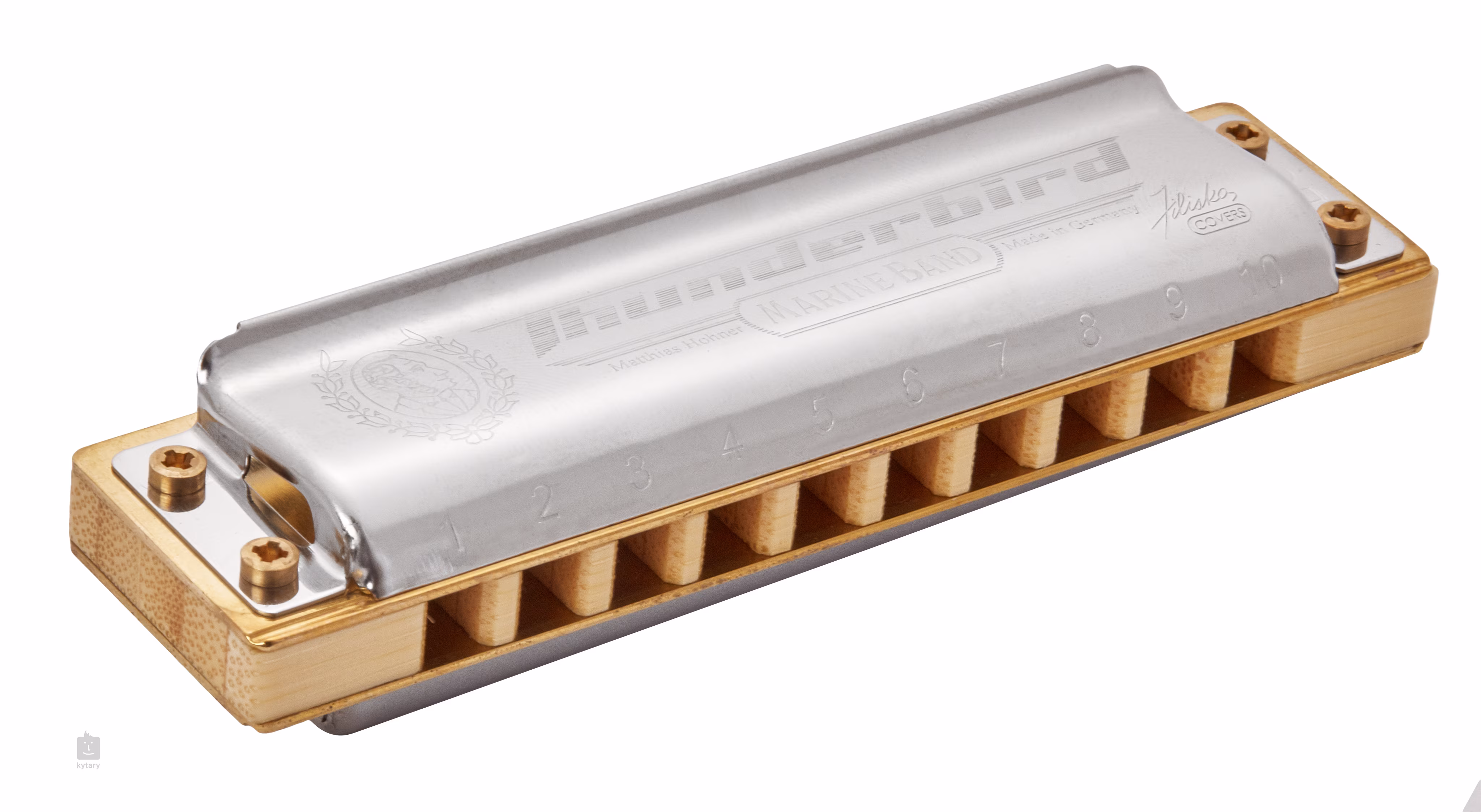 Model Marine Band Thunderbird je naladený o oktávu nižšie ako štandardné harmoniky. Dokáže tak vyprodukovať skutočne silný a bohatý zvuk. Jeho patentované, trikrát lakované, laminované bambusové telo je úplne vodotesné a vzduchotesné, čo zaručuje jeho stabilitu a skutočne čistý, rezonančný tón. Harmonika je tiež vybavená zosilnenými krytmi z nehrdzavejúcej ocele s bočnými otvormi a otvorenou zadnou stranou, pričom spodný asymetrický kryt zabraňuje chrasteniu plátkov pri hre, zaoblenými hranami pre väčší komfort pri hraní, dvadsiatimi mosadznými hlasmi, mosadznými plátkami s hrúbkou 0,9 mm a rozsahom troch oktáv. Súčasťou balenia je aj neoprénové puzdro na zips, ktoré chráni harmoniku pred prachom a umožňuje únik vlhkosti.
